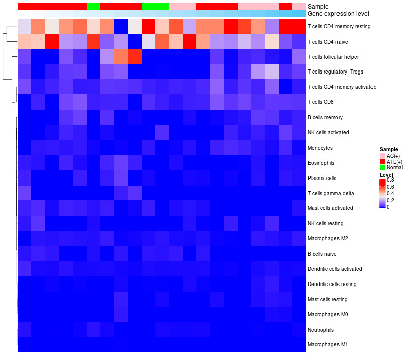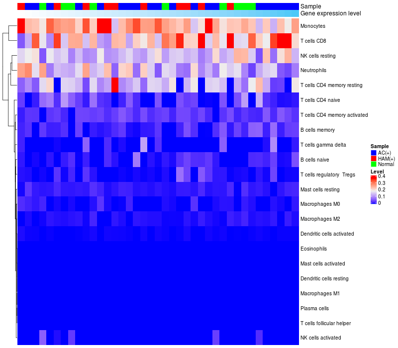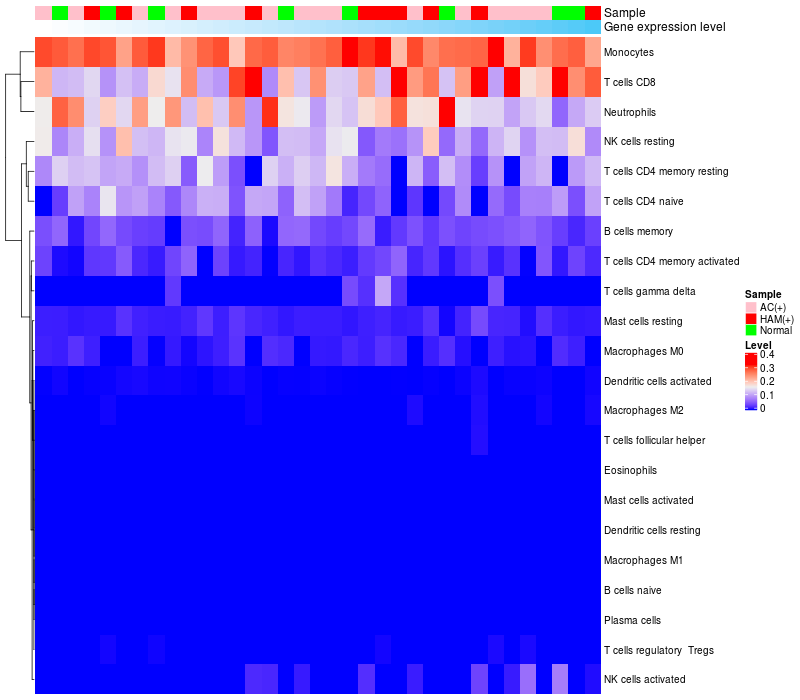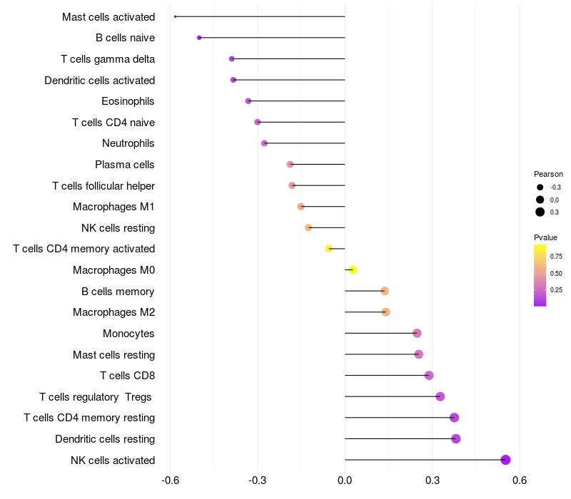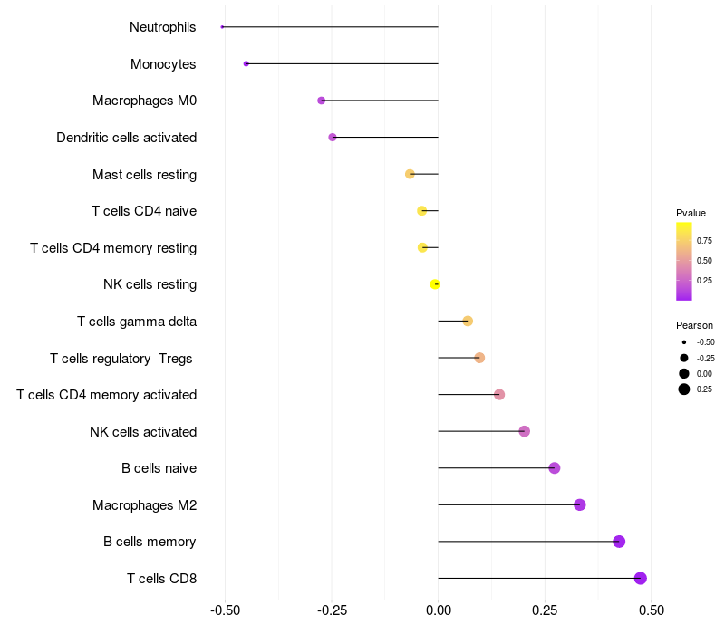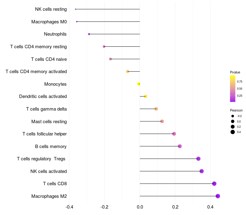 Relationship between gene expression and immune infiltrating cell level