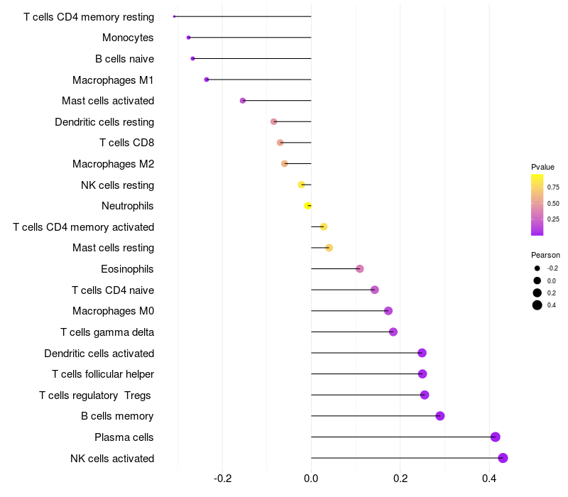 Relationship between gene expression and immune infiltrating cell level