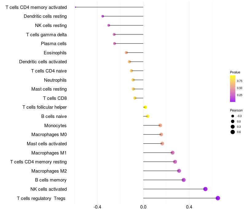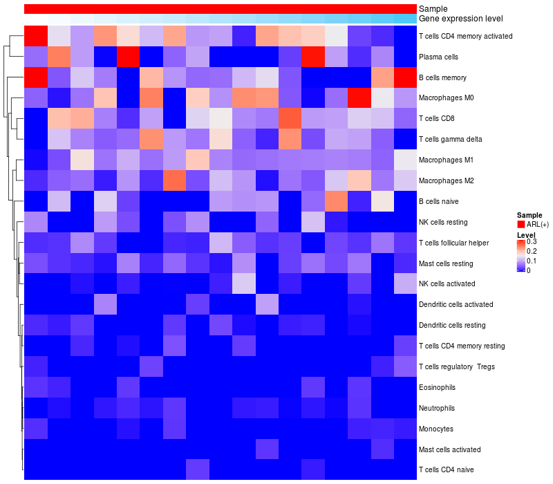 Relationship between gene expression and immune infiltrating cell level