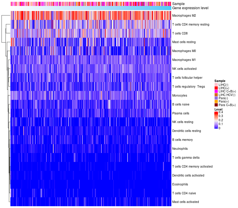 Liver hepatocellular carcinoma HCV (HBV+)(86), Liver hepatocellular carcinoma HCV (HBV-)(19), Liver hepatocellular carcinoma (HBV+)(209), Liver hepatocellular carcinoma (HBV+)(60), Paracancerous HCV (HBV+)(4), Paracancerous (HBV-)(28), Paracancerous (HBV+)(18) |
