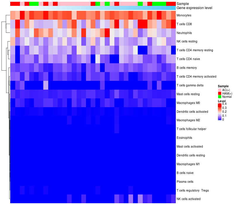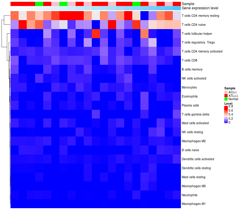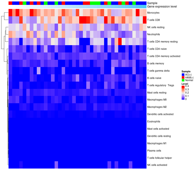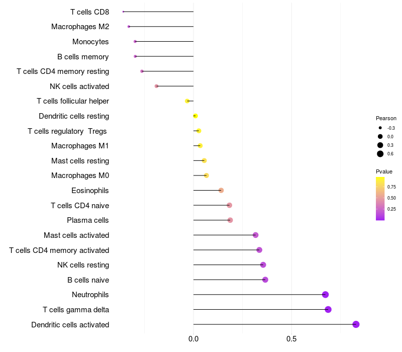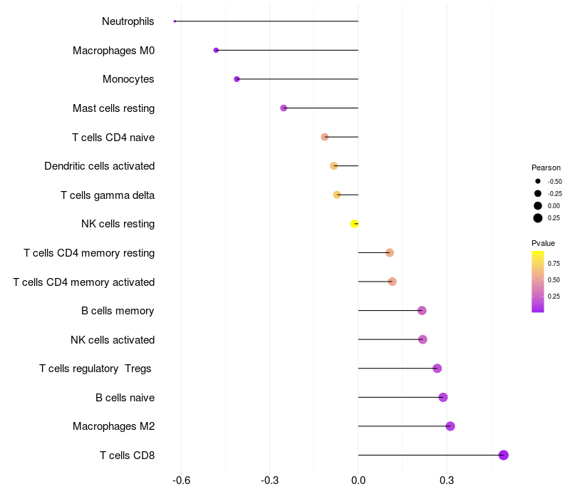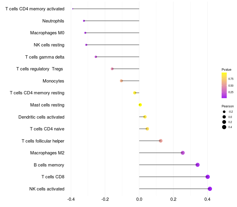 Relationship between gene expression and immune infiltrating cell level