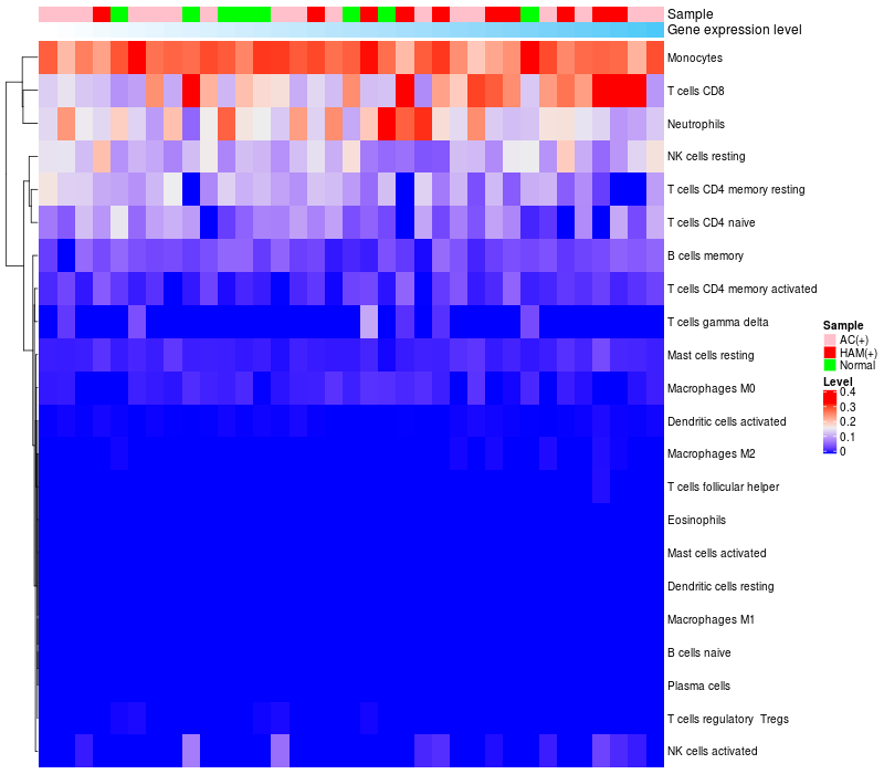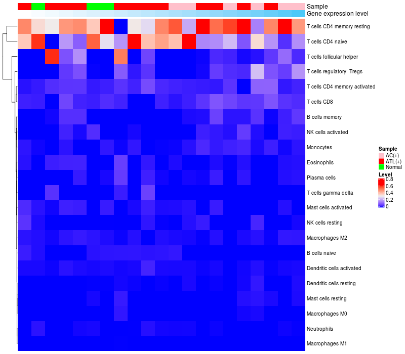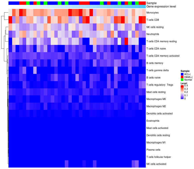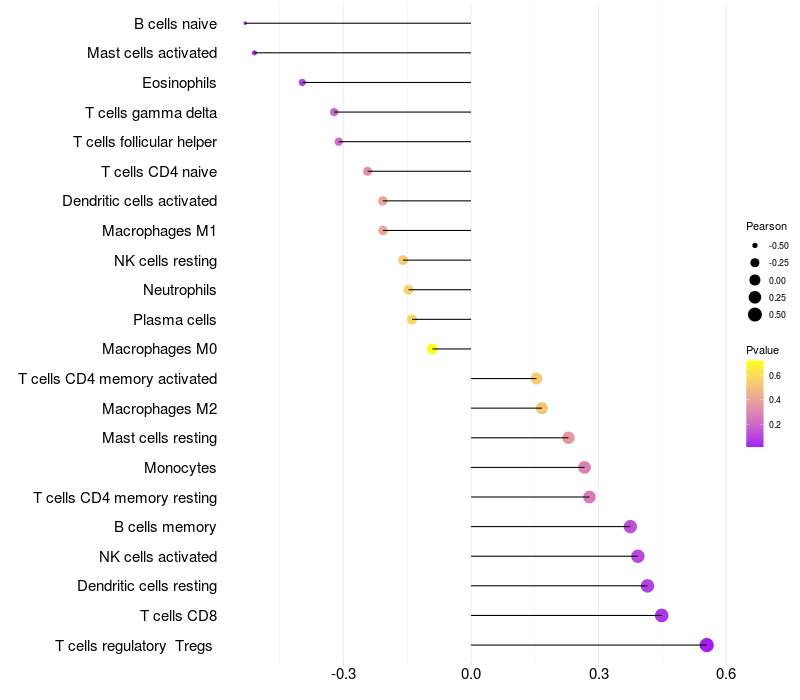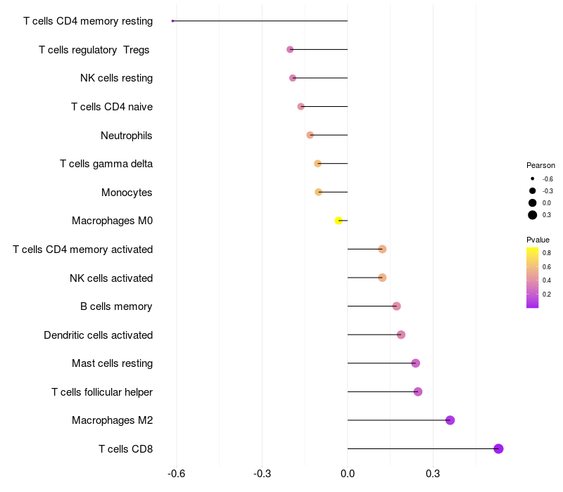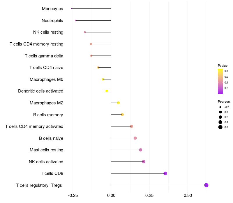 Lollipop of RIPK1 expression and immune infiltrating cell level correlation result in HTLV1+ samples