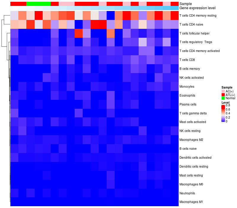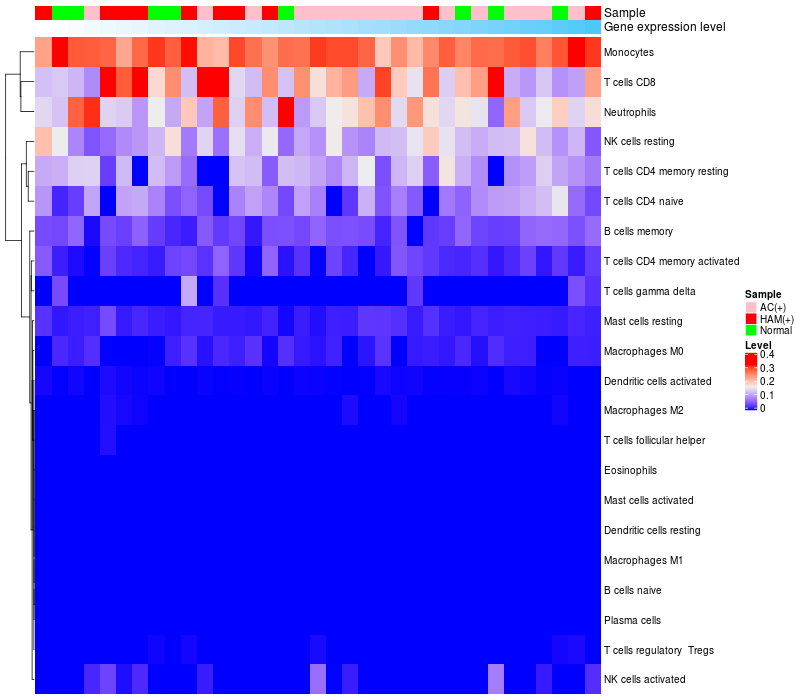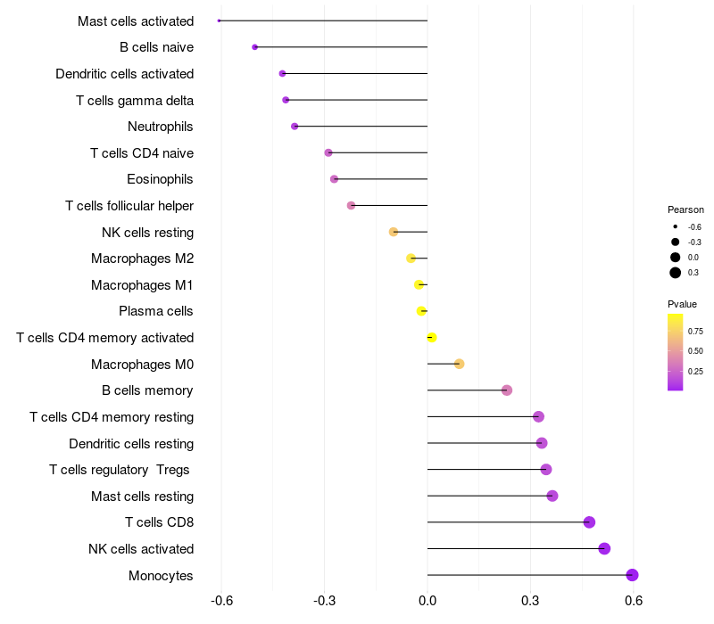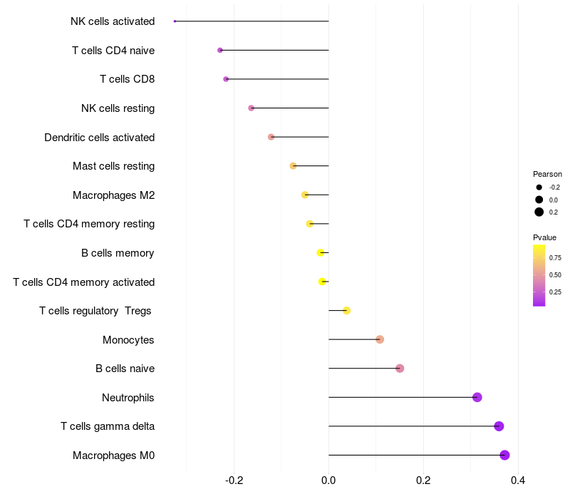 Lollipop of RIT2 expression and immune infiltrating cell level correlation result in HTLV1+ samples