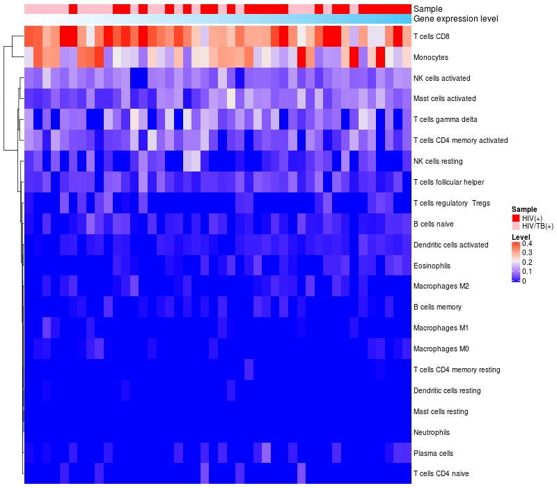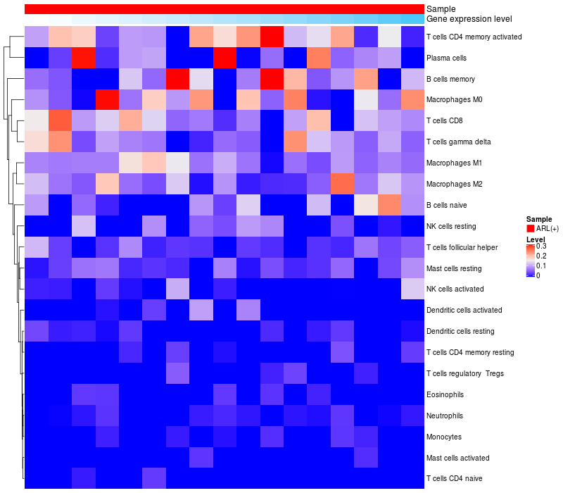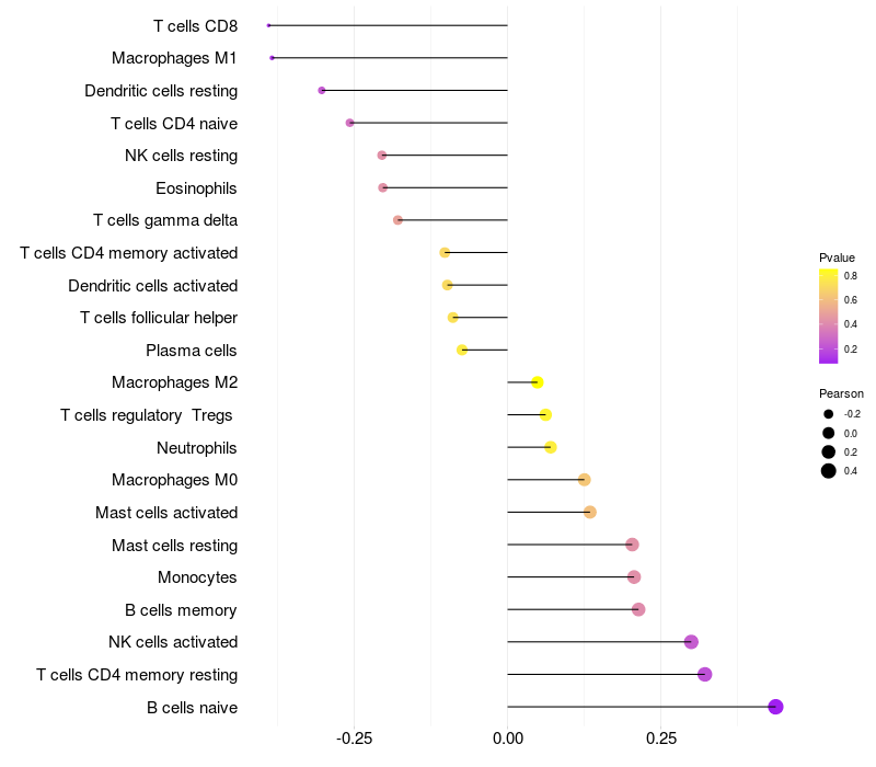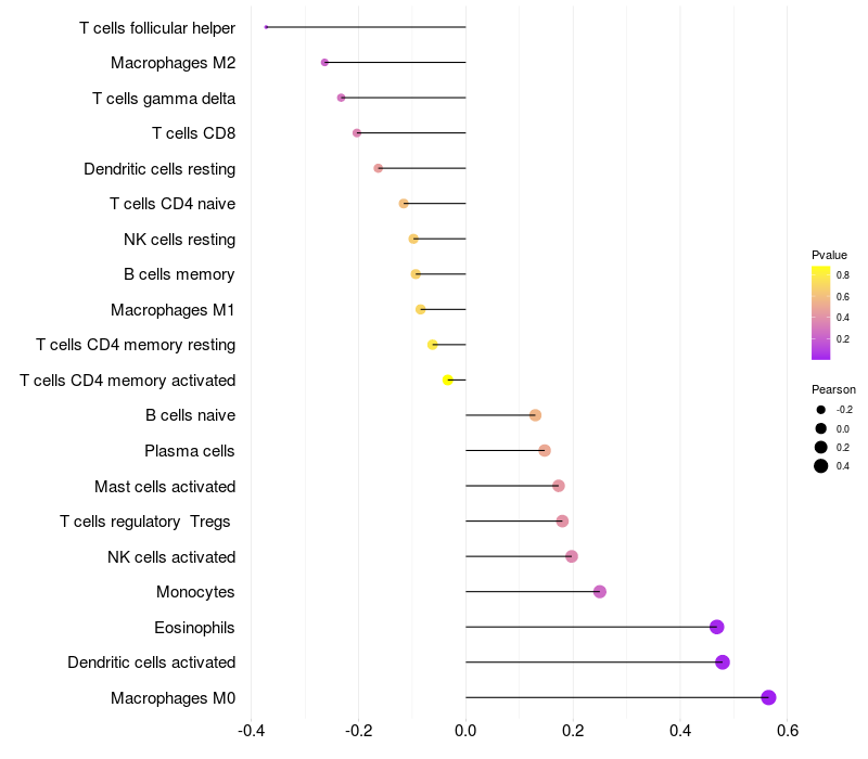Relationship between gene expression and immune infiltrating cell level