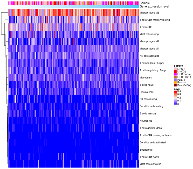 Relationship between gene expression and immune infiltrating cell level