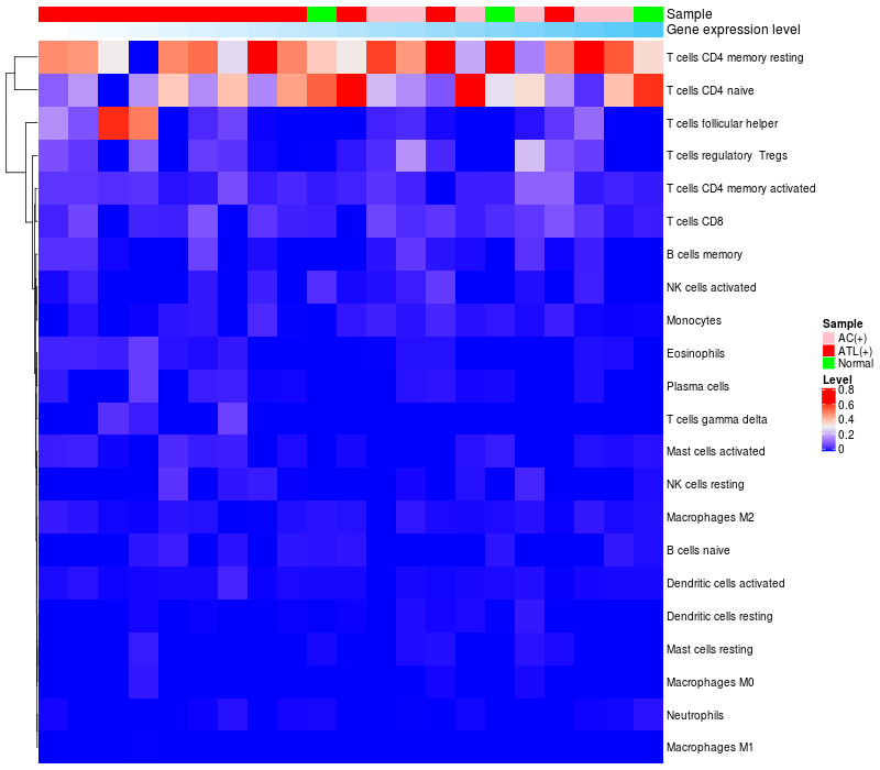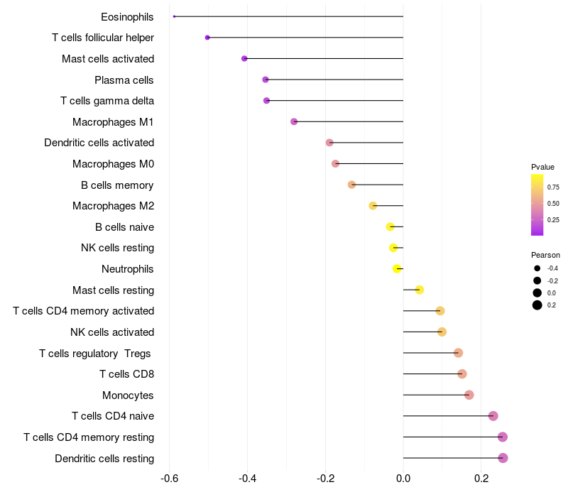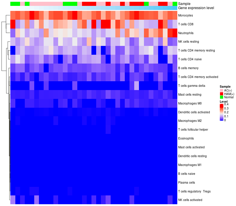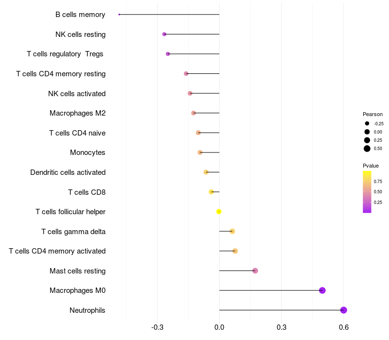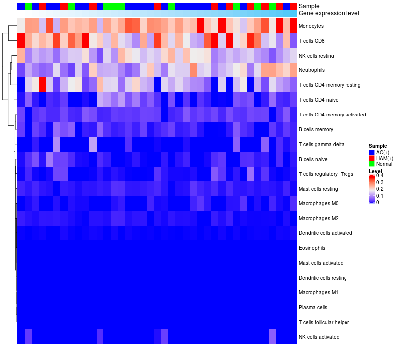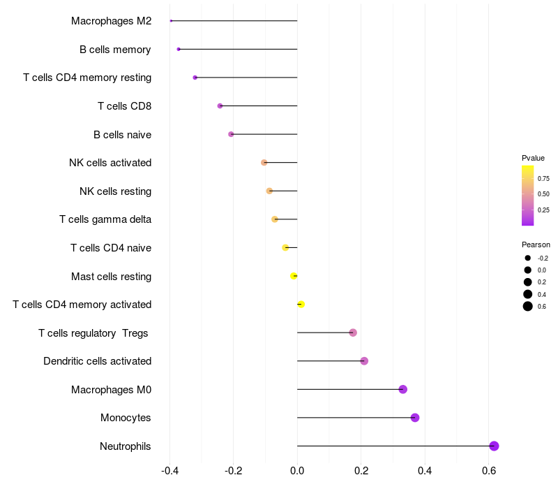 Relationship between gene expression and immune infiltrating cell level