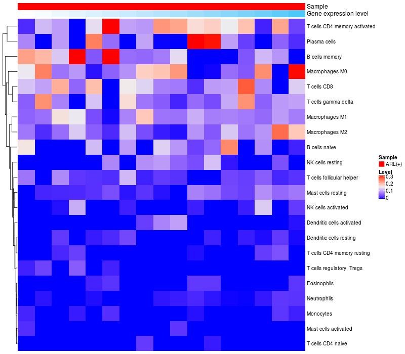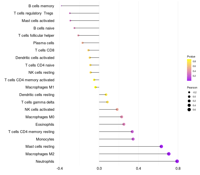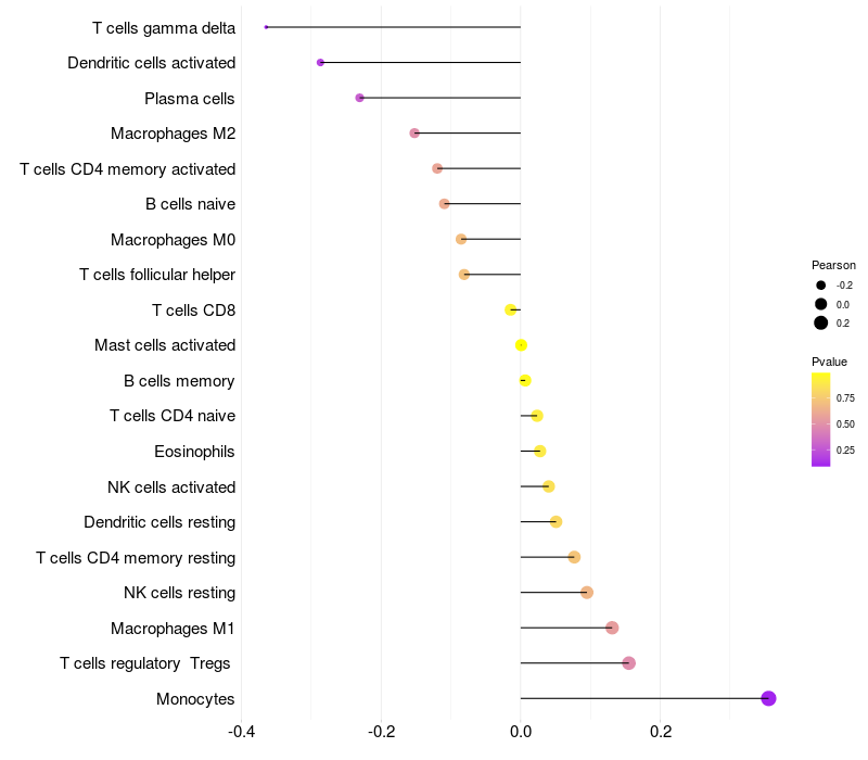 Relationship between gene expression and immune infiltrating cell level