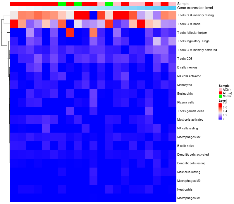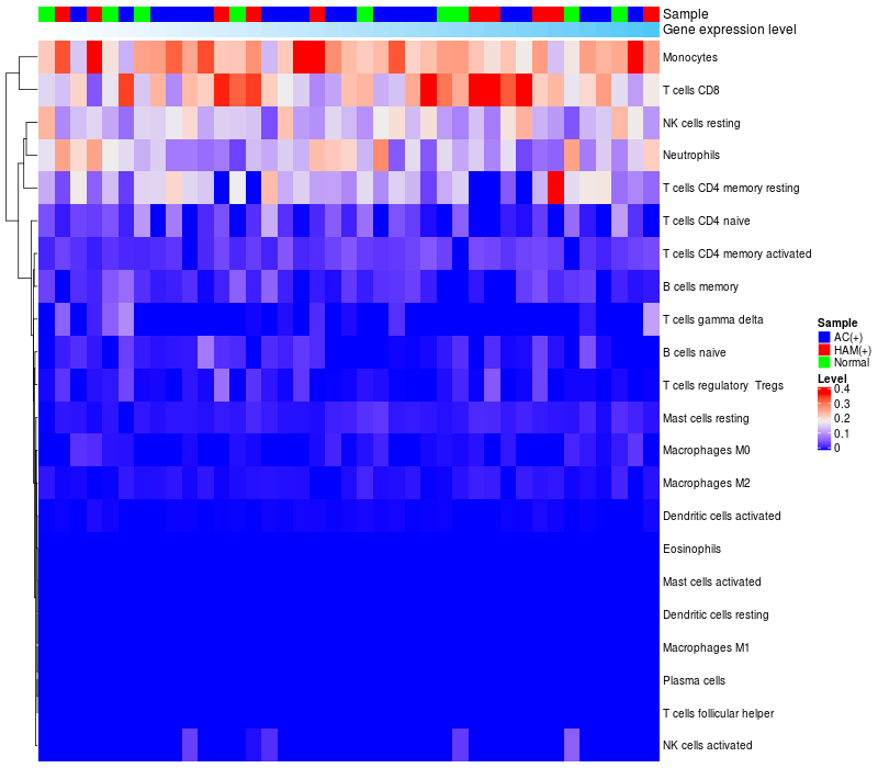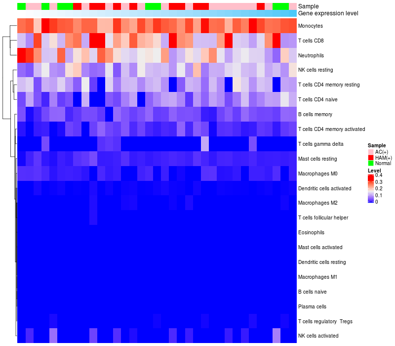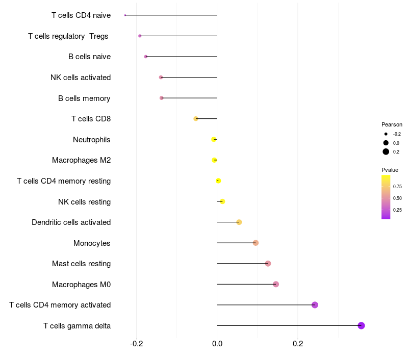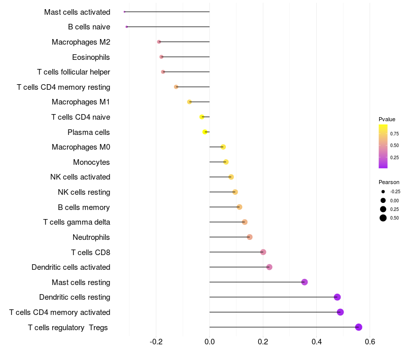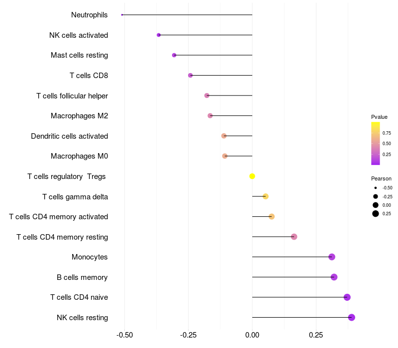 Relationship between gene expression and immune infiltrating cell level