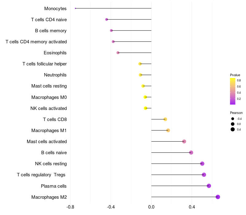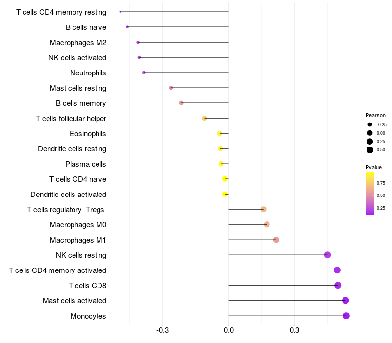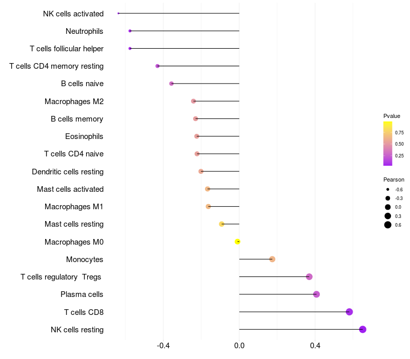 Lollipop of RNF165 expression and immune infiltrating cell level correlation result in HBV+ Liver cirrhosis samples