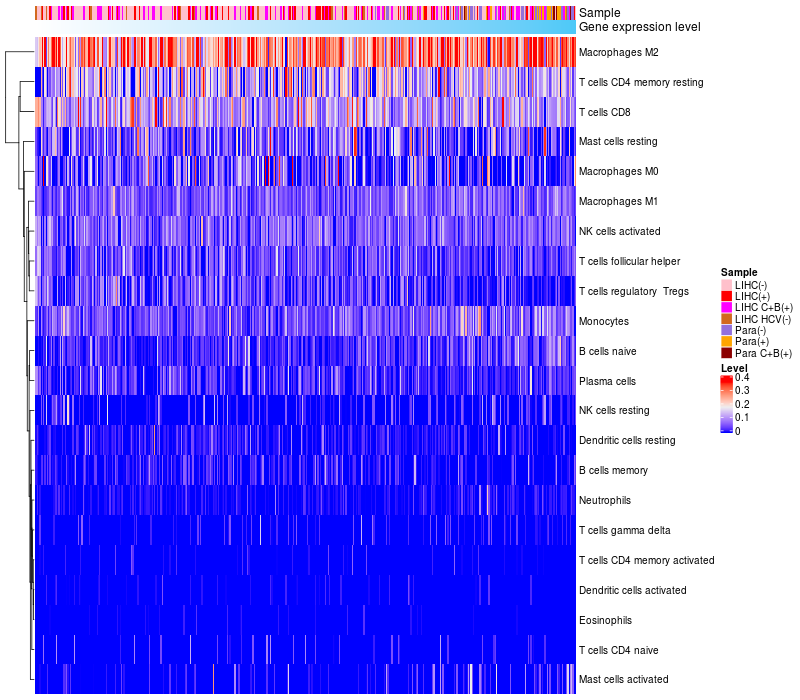 Liver hepatocellular carcinoma HCV (HBV+)(86), Liver hepatocellular carcinoma HCV (HBV-)(19), Liver hepatocellular carcinoma (HBV+)(209), Liver hepatocellular carcinoma (HBV+)(60), Paracancerous HCV (HBV+)(4), Paracancerous (HBV-)(28), Paracancerous (HBV+)(18) |
