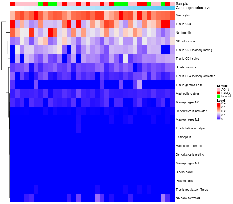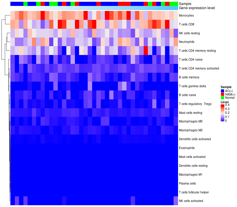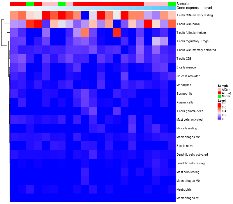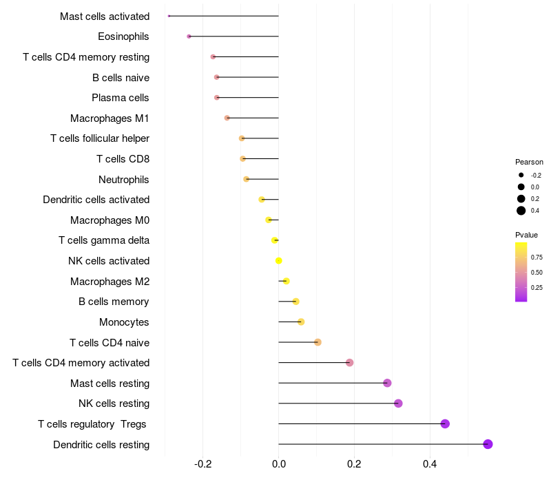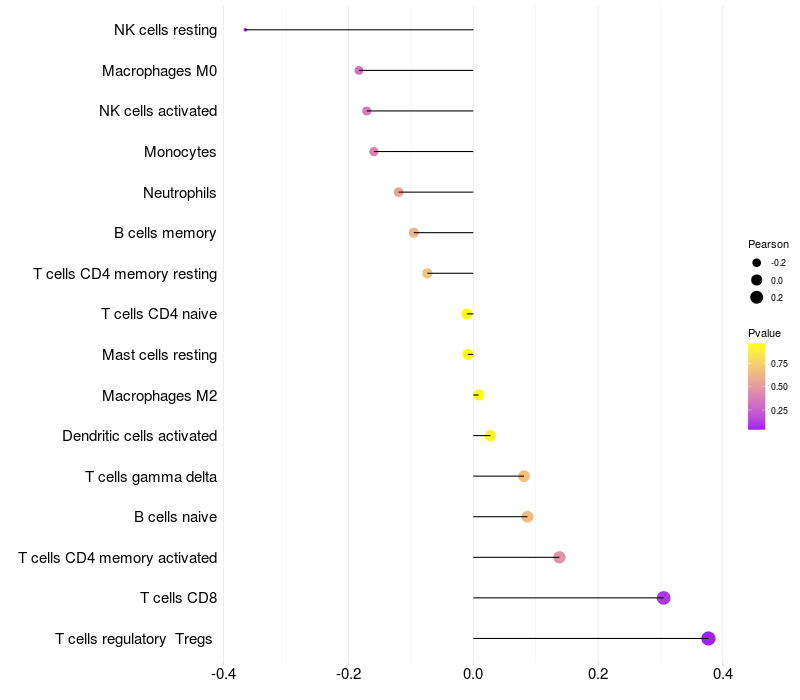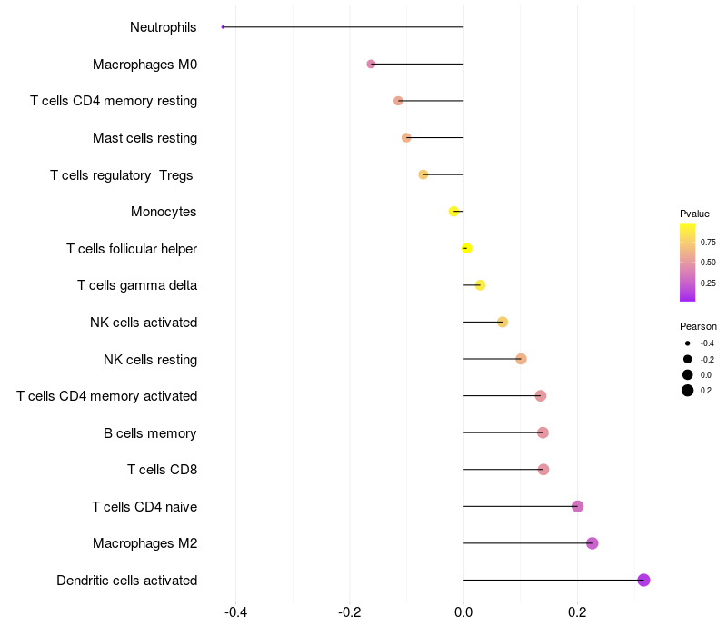Lollipop of RNF17 expression and immune infiltrating cell level correlation result in HTLV1+ samples