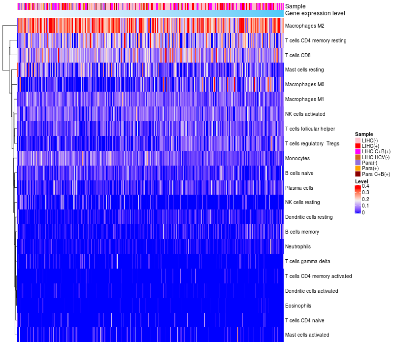 Relationship between gene expression and immune infiltrating cell level