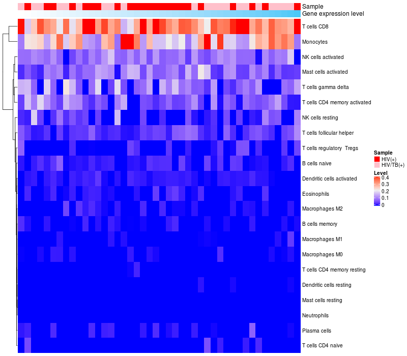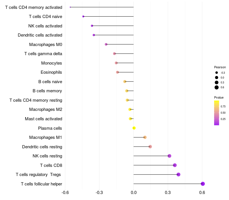 Relationship between gene expression and immune infiltrating cell level