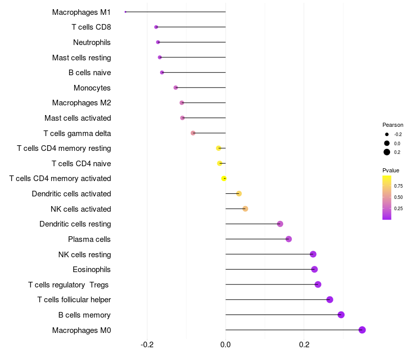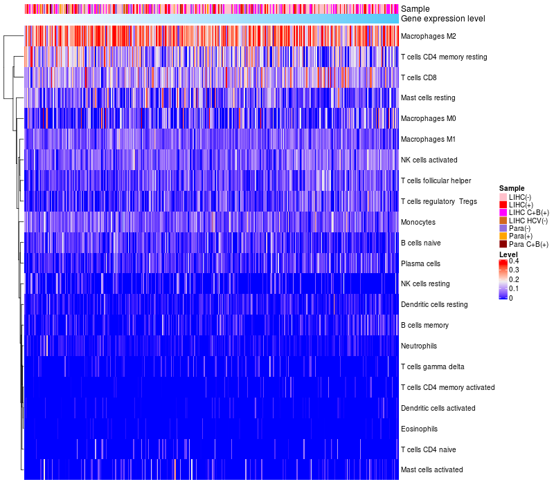 Relationship between gene expression and immune infiltrating cell level