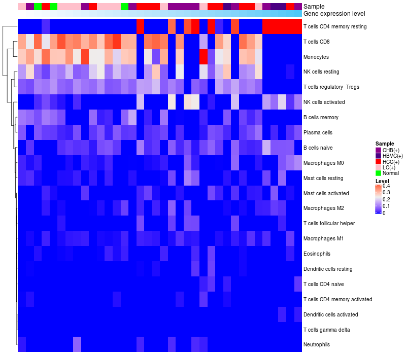 Liver hepatocellular carcinoma HCV (HBV+)(86), Liver hepatocellular carcinoma HCV (HBV-)(19), Liver hepatocellular carcinoma (HBV+)(209), Liver hepatocellular carcinoma (HBV+)(60), Paracancerous HCV (HBV+)(4), Paracancerous (HBV-)(28), Paracancerous (HBV+)(18) |