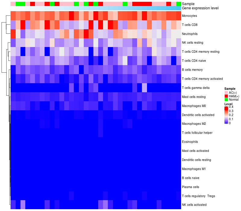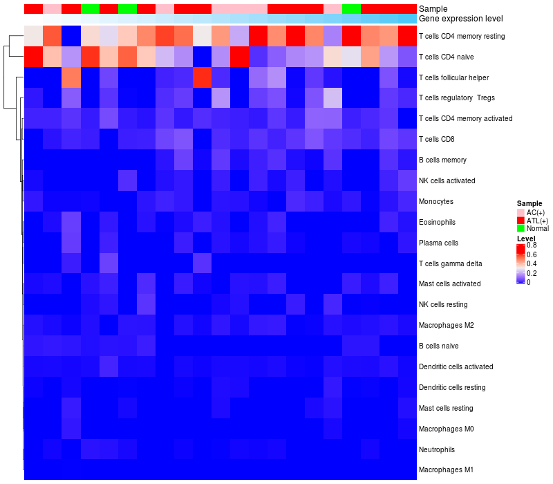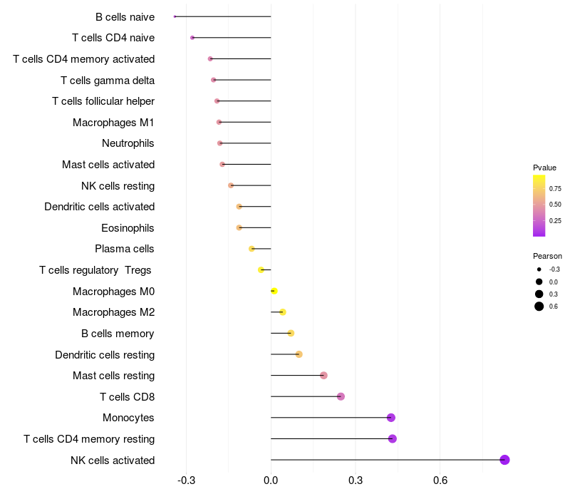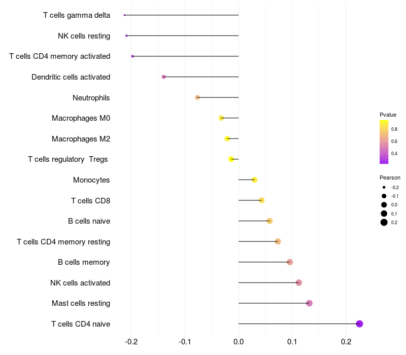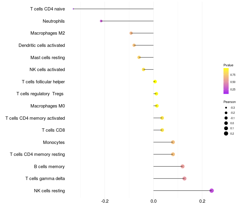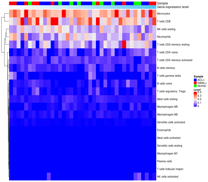 Relationship between gene expression and immune infiltrating cell level