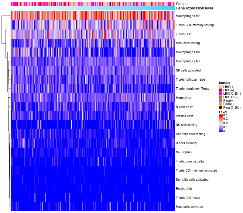 Liver hepatocellular carcinoma HCV (HBV+)(86), Liver hepatocellular carcinoma HCV (HBV-)(19), Liver hepatocellular carcinoma (HBV+)(209), Liver hepatocellular carcinoma (HBV+)(60), Paracancerous HCV (HBV+)(4), Paracancerous (HBV-)(28), Paracancerous (HBV+)(18) |