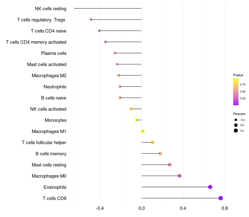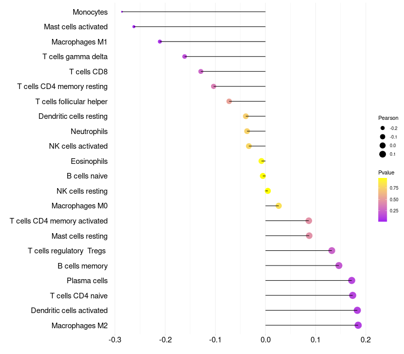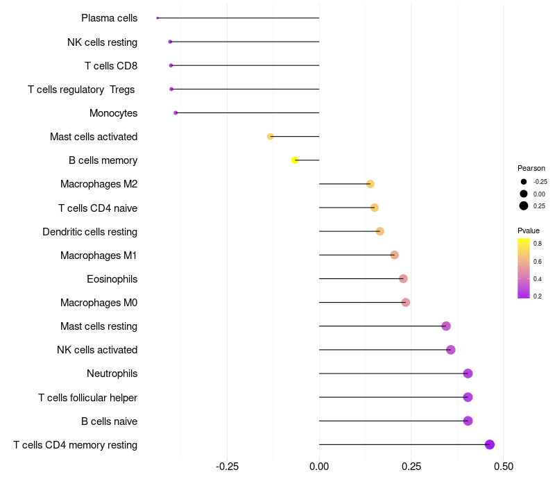 Lollipop of RPAP1 expression and immune infiltrating cell level correlation result in HBV+ Liver cirrhosis samples