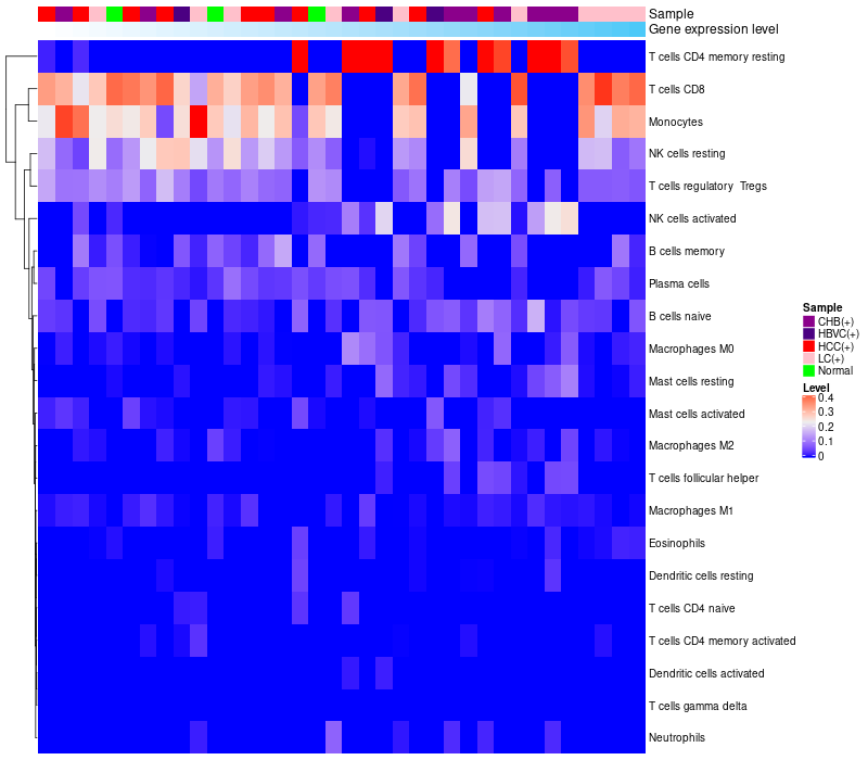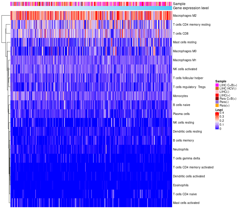 Liver hepatocellular carcinoma HCV (HBV+)(86), Liver hepatocellular carcinoma HCV (HBV-)(19), Liver hepatocellular carcinoma (HBV+)(209), Liver hepatocellular carcinoma (HBV+)(60), Paracancerous HCV (HBV+)(4), Paracancerous (HBV-)(28), Paracancerous (HBV+)(18) |
