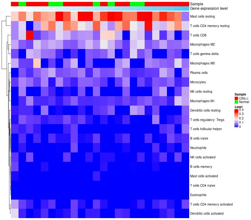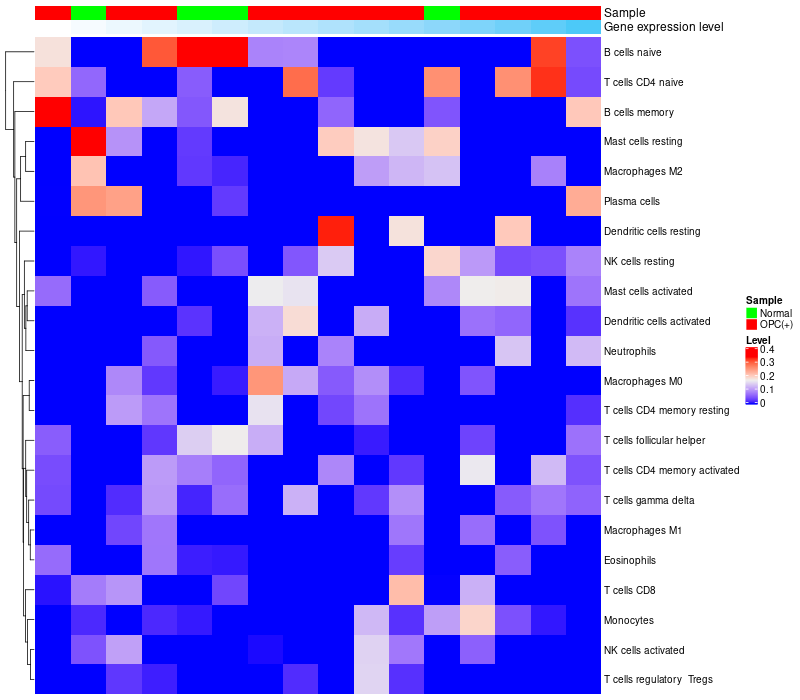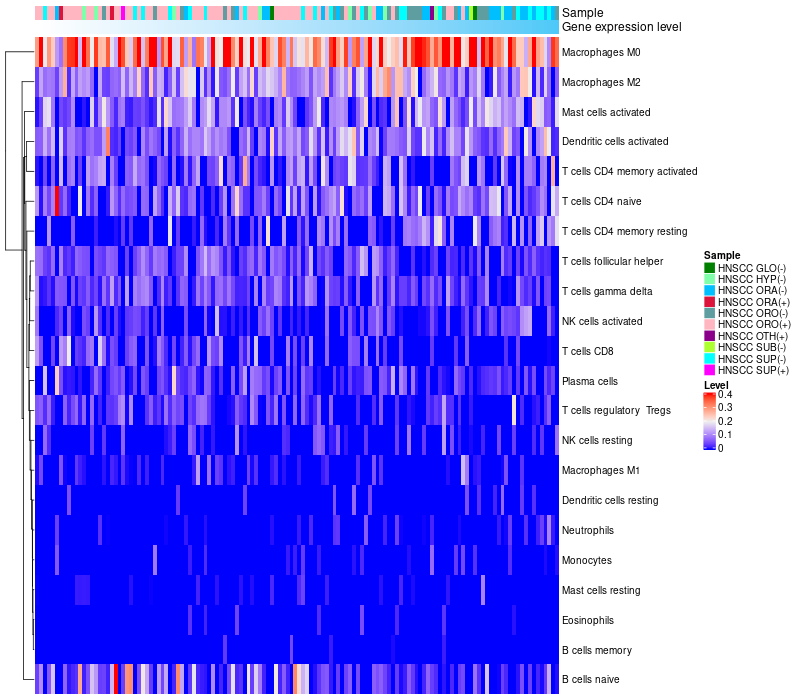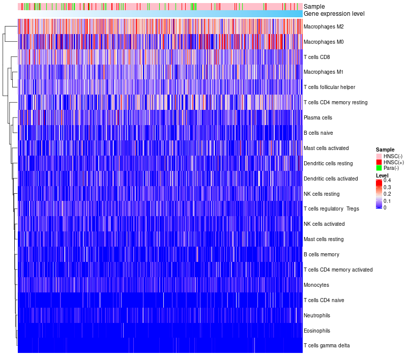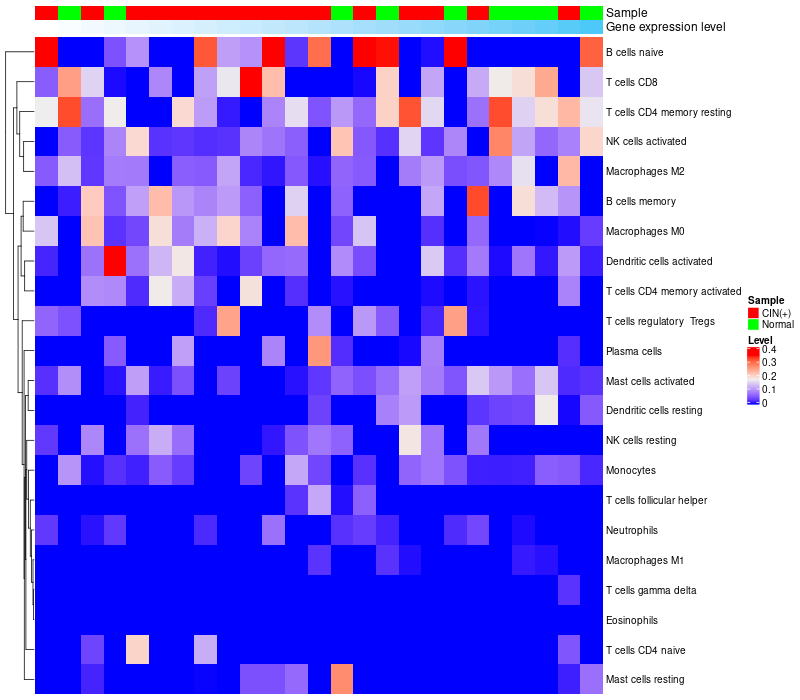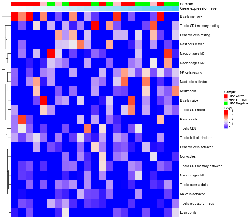 Lollipop of RPE expression and immune infiltrating cell level correlation result in HPV+ samples
