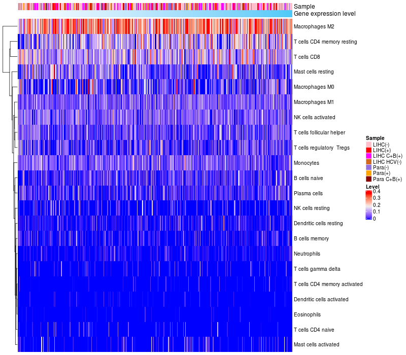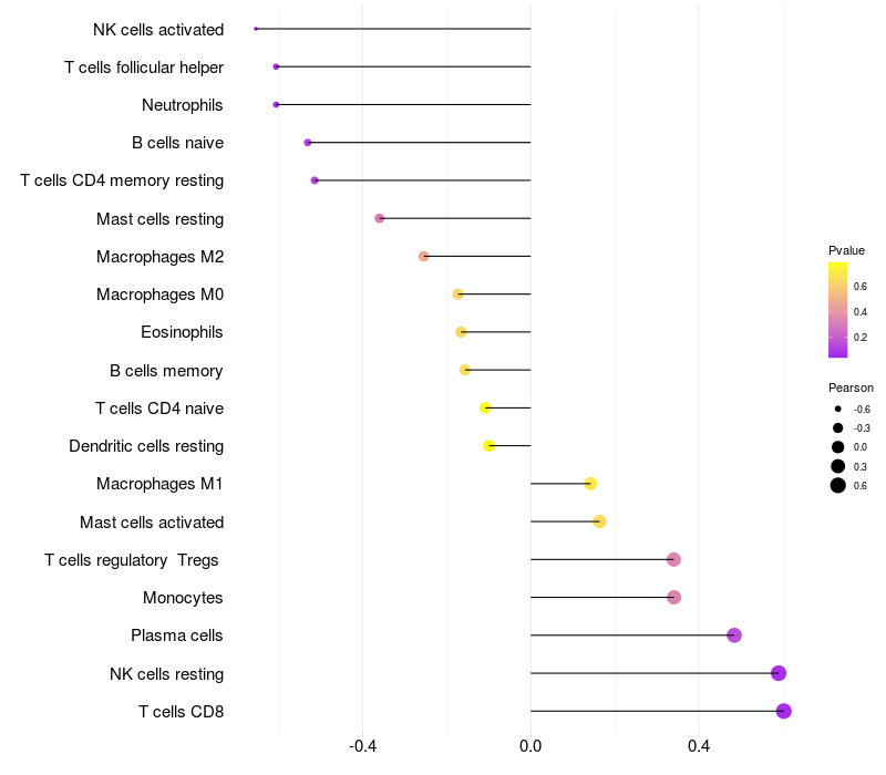 Relationship between gene expression and immune infiltrating cell level