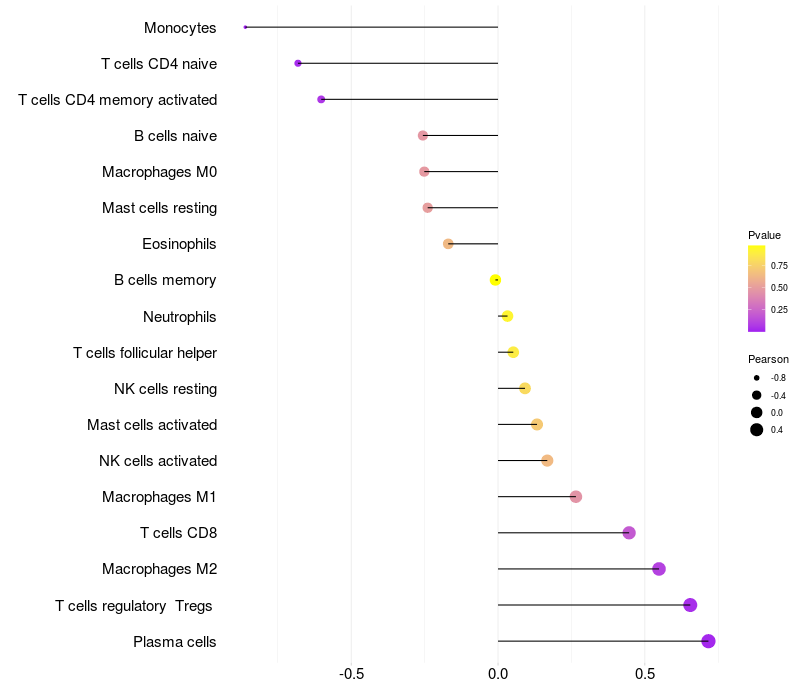 Lollipop of RPGR expression and immune infiltrating cell level correlation result in HBV+ Liver cirrhosis samples