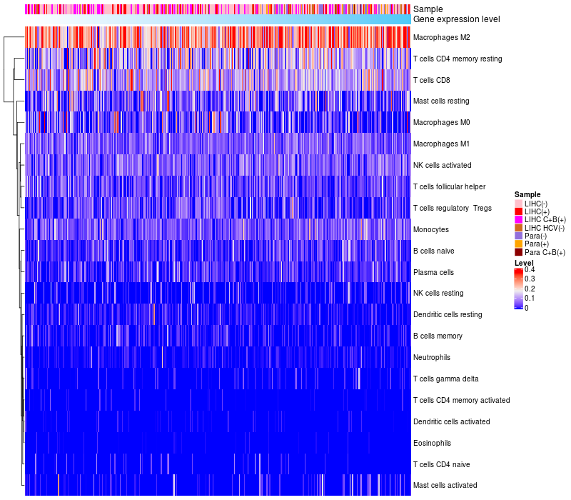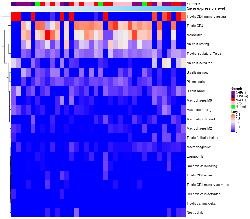 Relationship between gene expression and immune infiltrating cell level