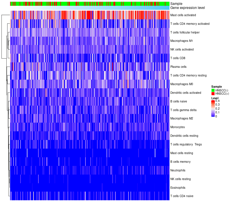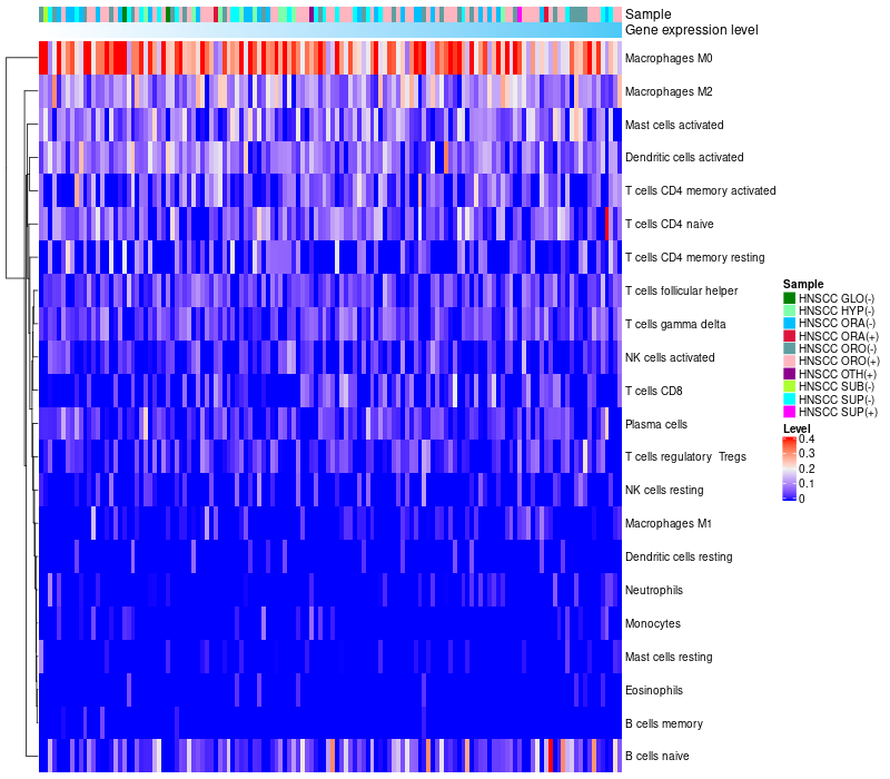 Head and Neck squamous cell carcinoma(HPV-)(483),Head and Neck squamous cell carcinoma(HPV+)(39),Paracancerous(HPV-)(44) |