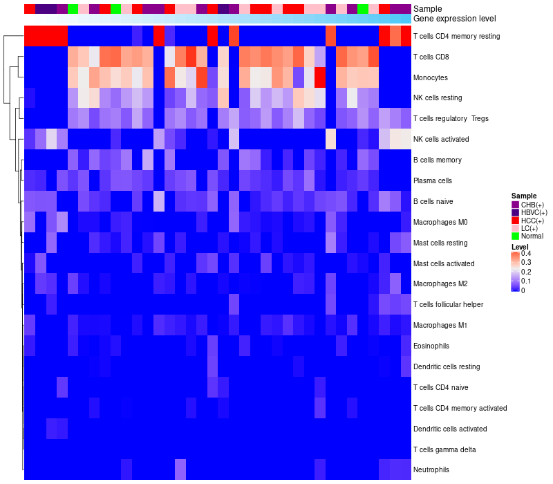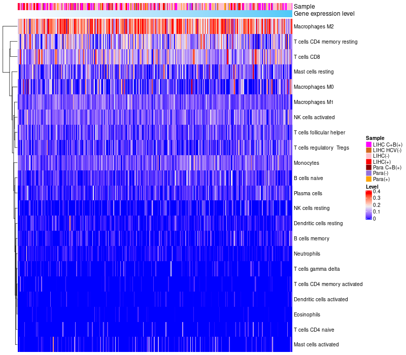 Liver hepatocellular carcinoma HCV (HBV+)(86), Liver hepatocellular carcinoma HCV (HBV-)(19), Liver hepatocellular carcinoma (HBV+)(209), Liver hepatocellular carcinoma (HBV+)(60), Paracancerous HCV (HBV+)(4), Paracancerous (HBV-)(28), Paracancerous (HBV+)(18) |
