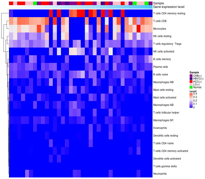Liver hepatocellular carcinoma HCV (HBV+)(86), Liver hepatocellular carcinoma HCV (HBV-)(19), Liver hepatocellular carcinoma (HBV+)(209), Liver hepatocellular carcinoma (HBV+)(60), Paracancerous HCV (HBV+)(4), Paracancerous (HBV-)(28), Paracancerous (HBV+)(18) |