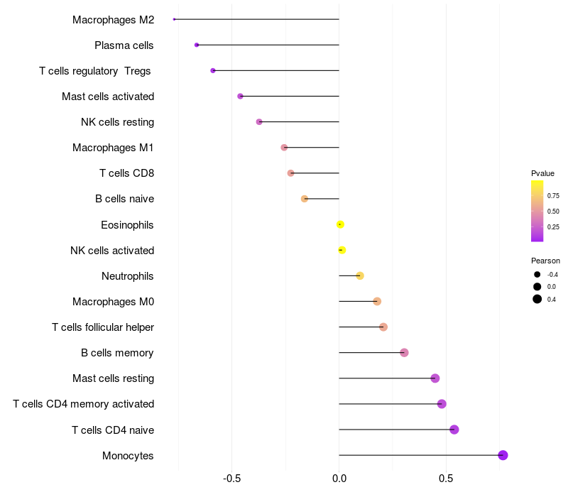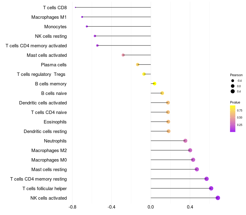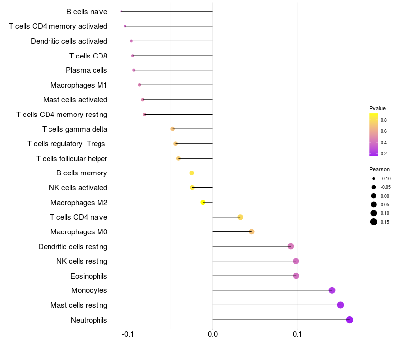 Lollipop of RPN1 expression and immune infiltrating cell level correlation result in HBV+ Liver cirrhosis samples