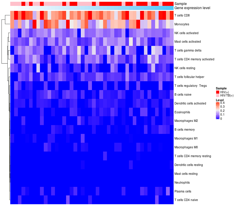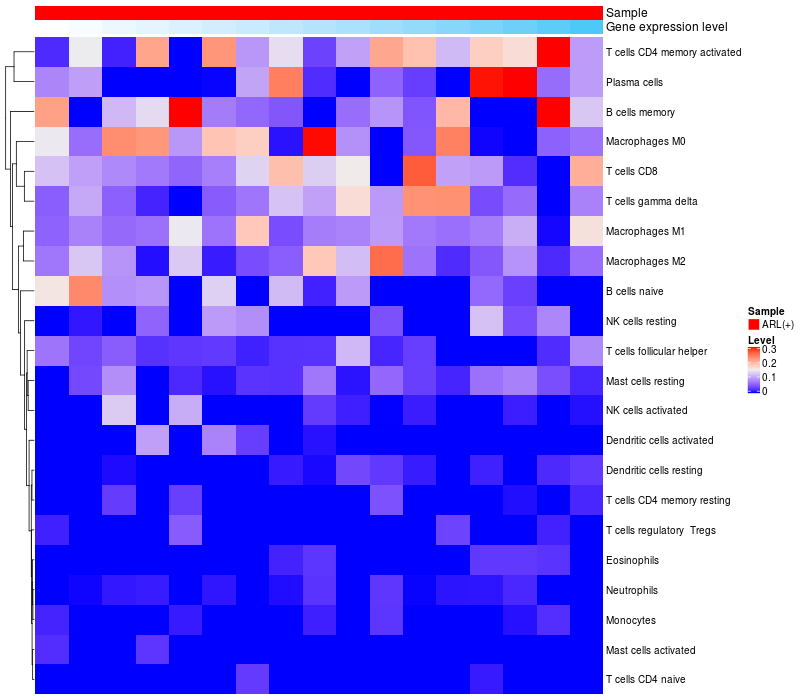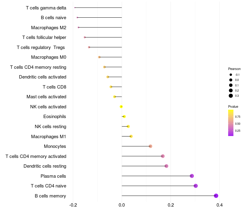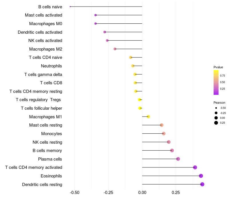 Relationship between gene expression and immune infiltrating cell level