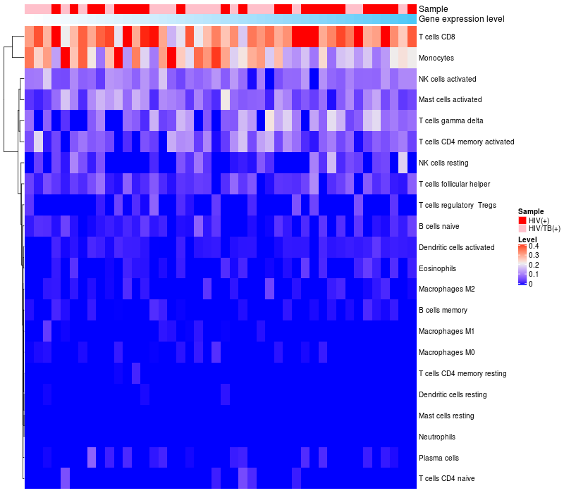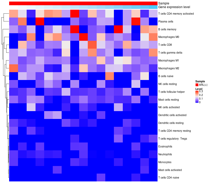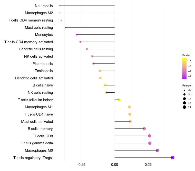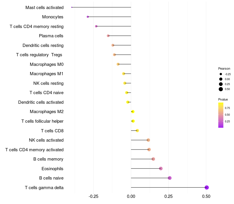 Relationship between gene expression and immune infiltrating cell level