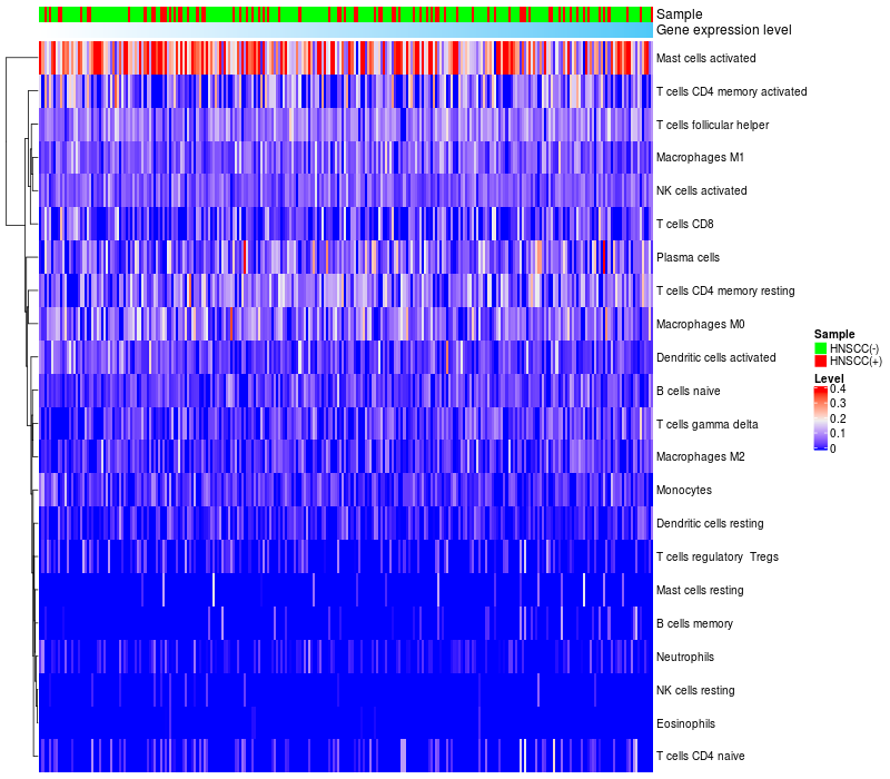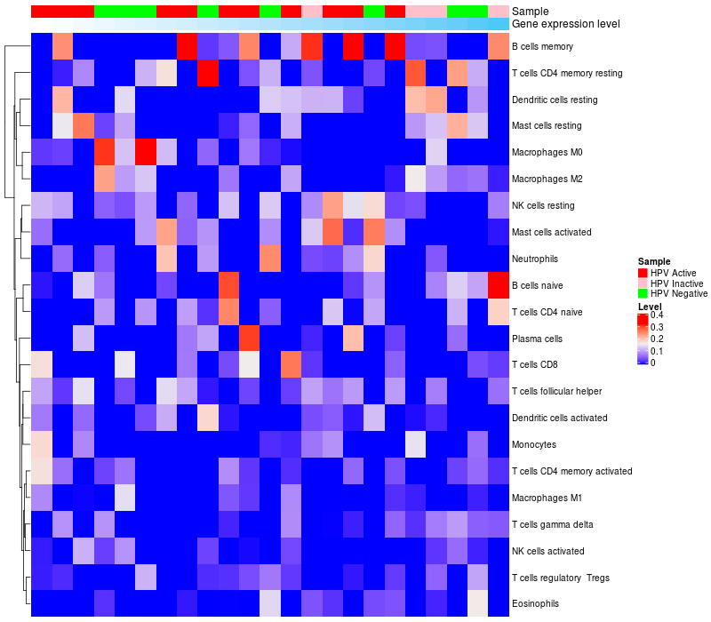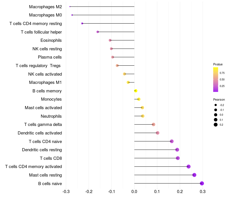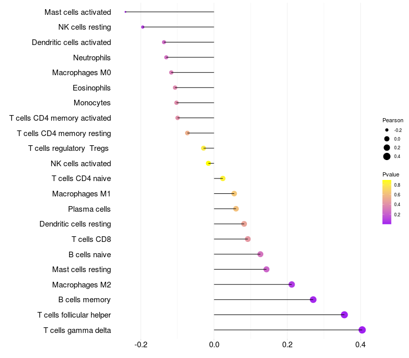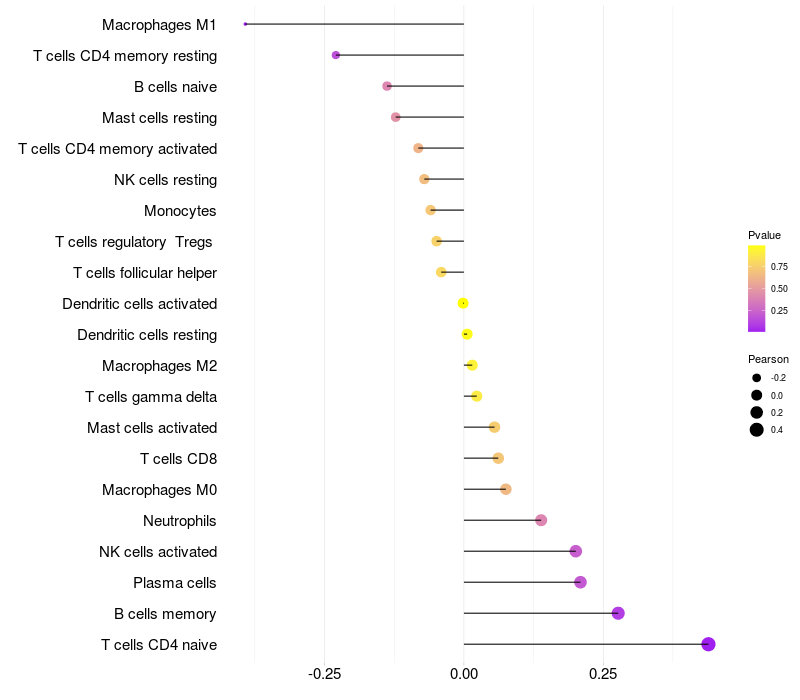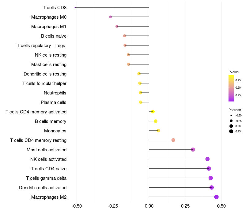 Lollipop of RPS15A expression and immune infiltrating cell level correlation result in HPV+ samples