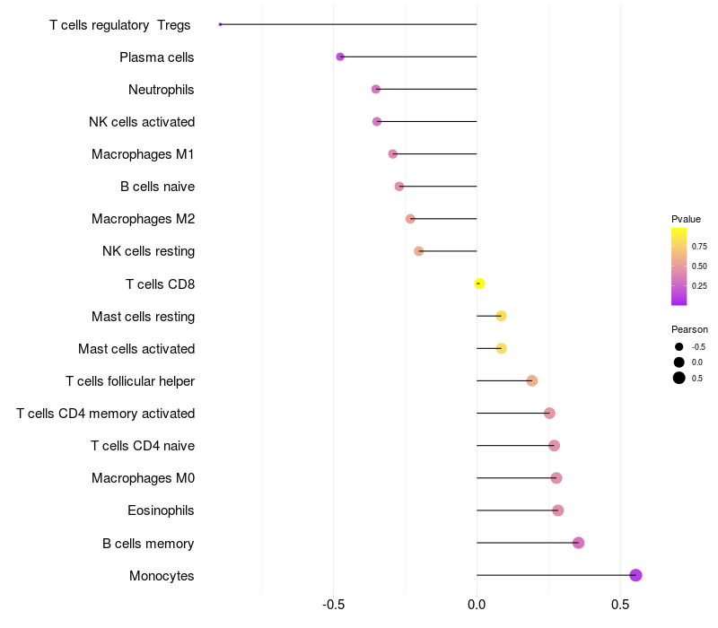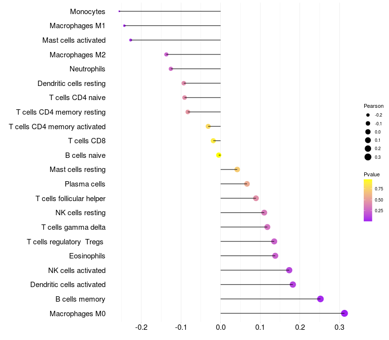 Lollipop of RPS28 expression and immune infiltrating cell level correlation result in HBV+ Liver cirrhosis samples