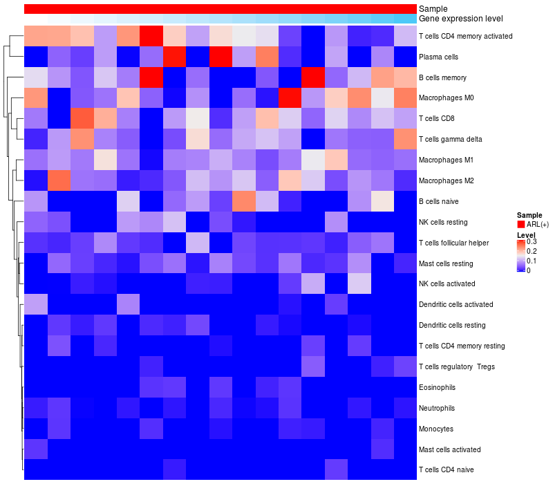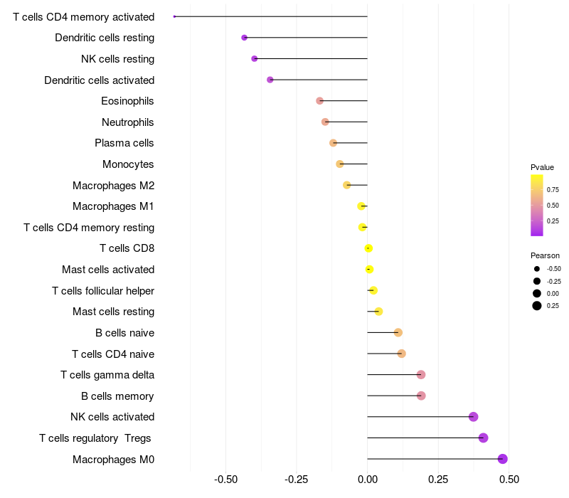 Relationship between gene expression and immune infiltrating cell level