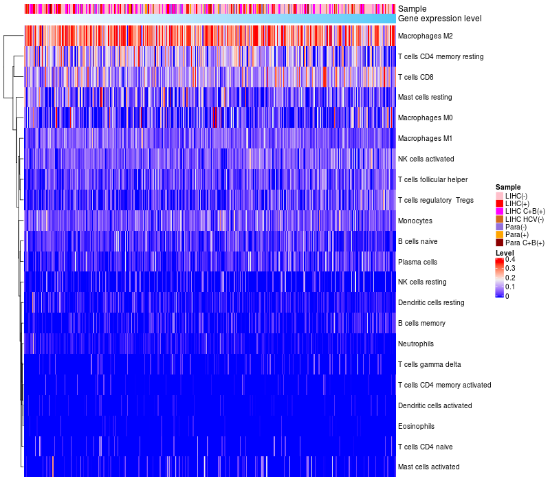Relationship between gene expression and immune infiltrating cell level
