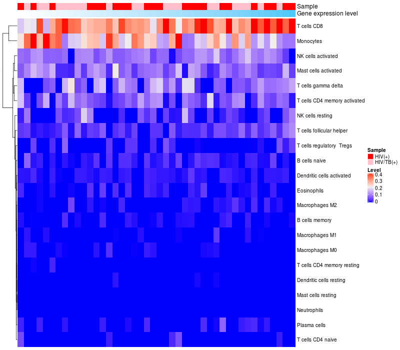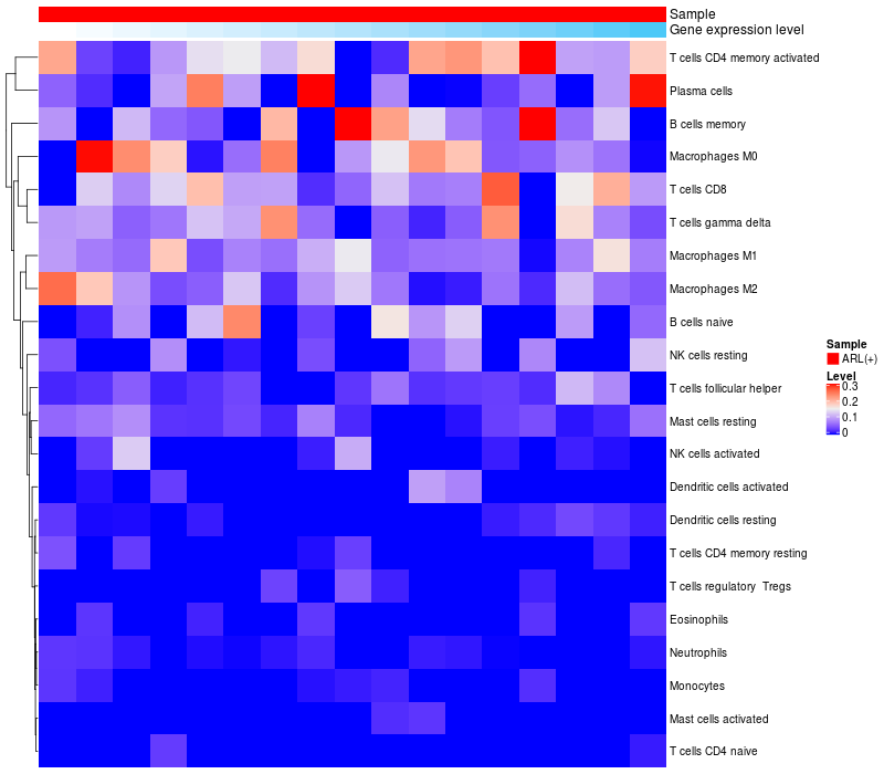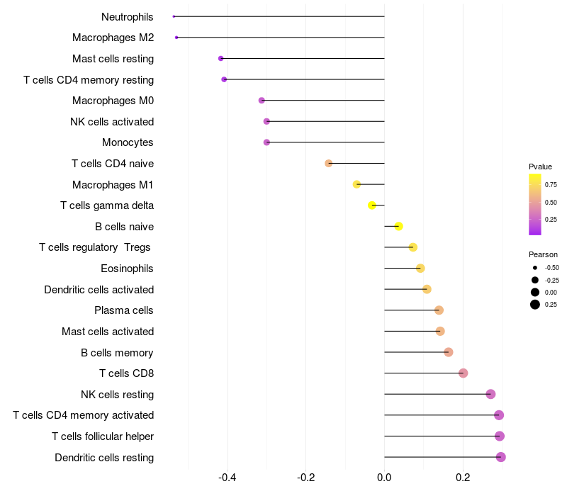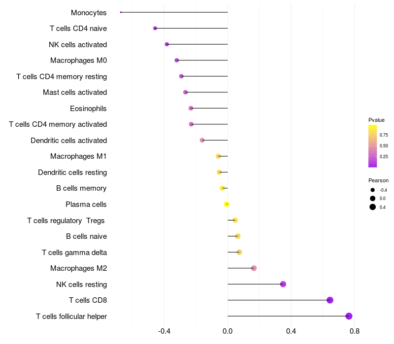 Relationship between gene expression and immune infiltrating cell level