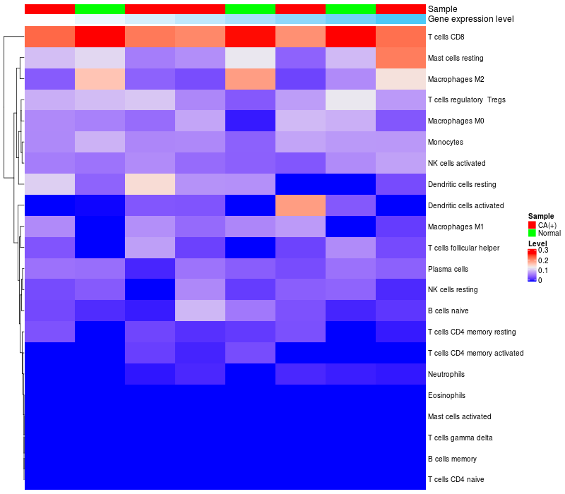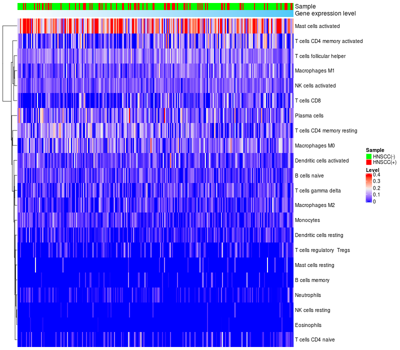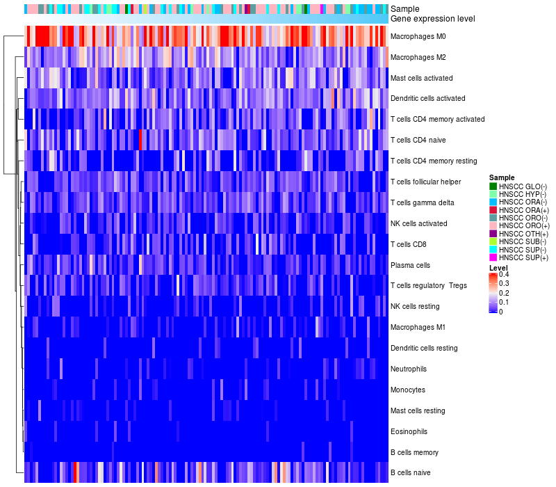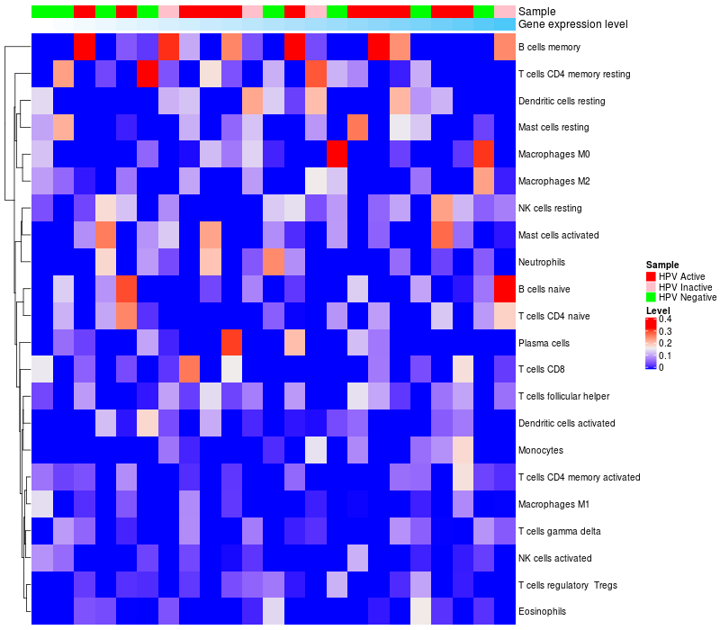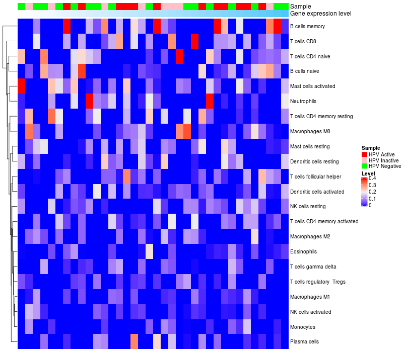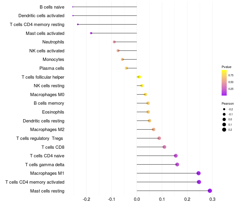 Lollipop of RRP8 expression and immune infiltrating cell level correlation result in HPV+ samples