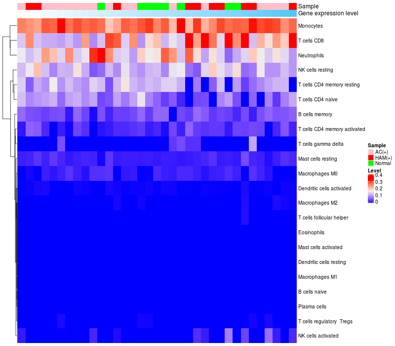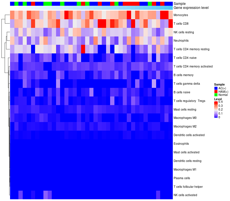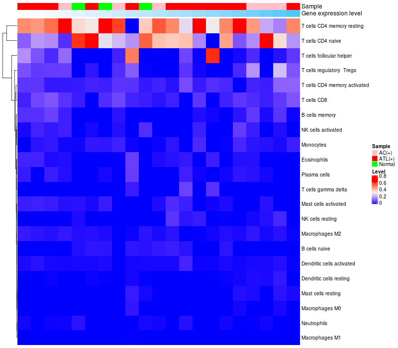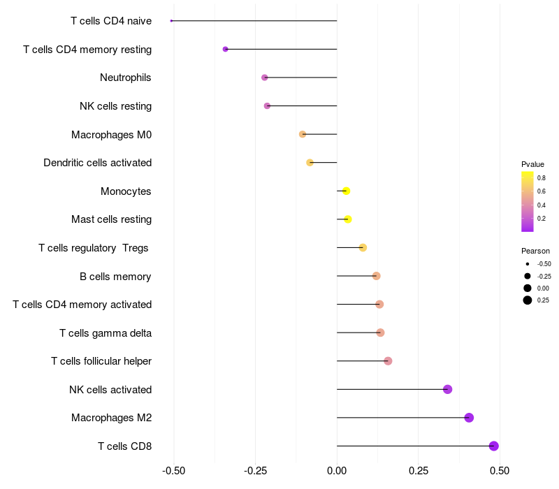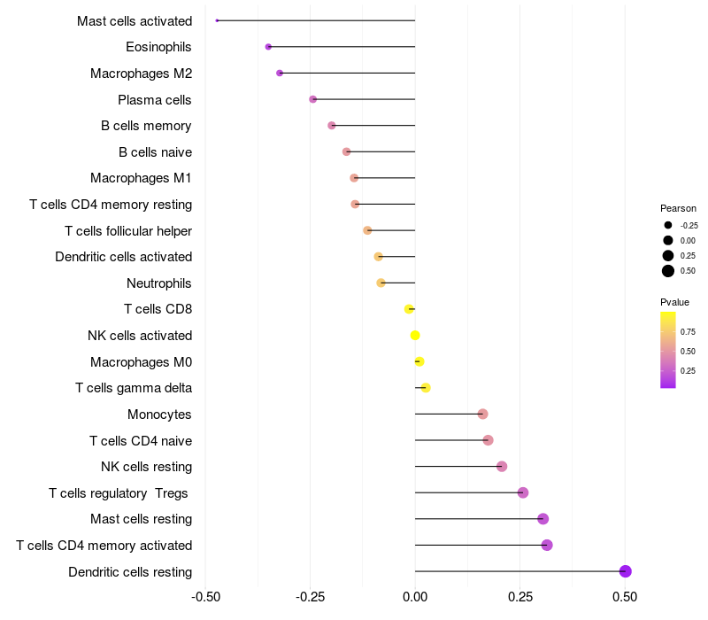Lollipop of RSPO4 expression and immune infiltrating cell level correlation result in HTLV1+ samples