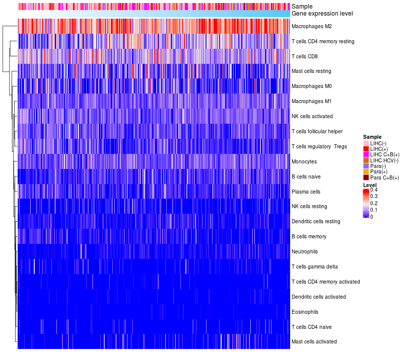 Liver hepatocellular carcinoma HCV (HBV+)(86), Liver hepatocellular carcinoma HCV (HBV-)(19), Liver hepatocellular carcinoma (HBV+)(209), Liver hepatocellular carcinoma (HBV+)(60), Paracancerous HCV (HBV+)(4), Paracancerous (HBV-)(28), Paracancerous (HBV+)(18) |