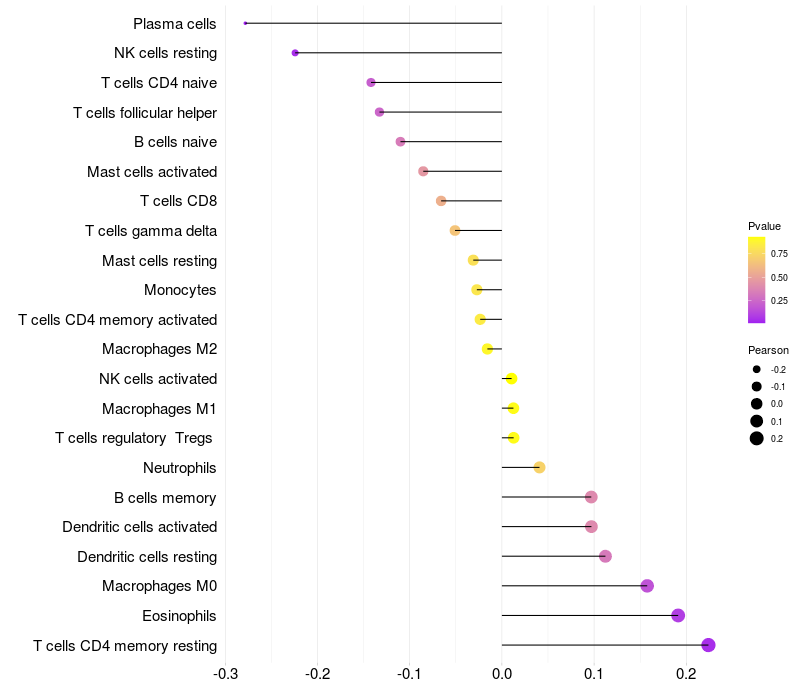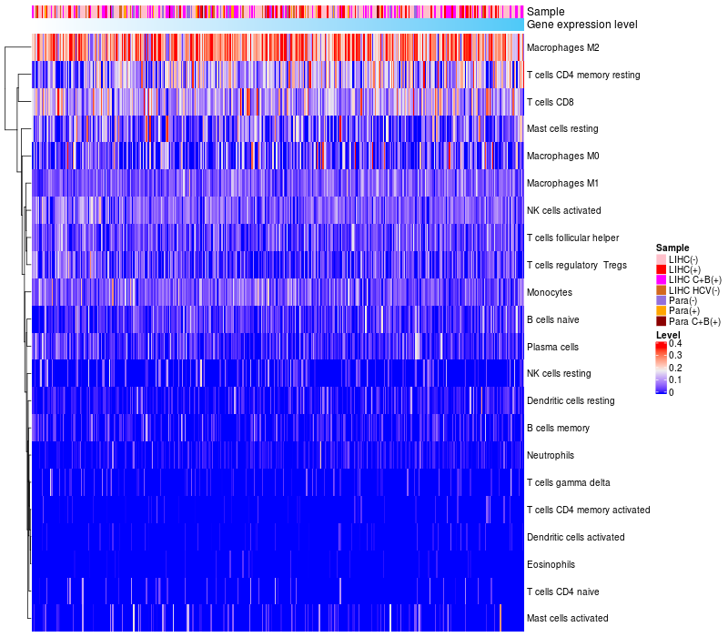 Relationship between gene expression and immune infiltrating cell level