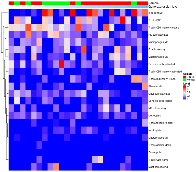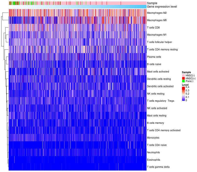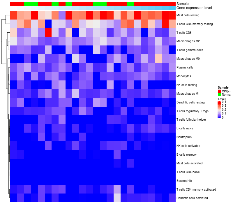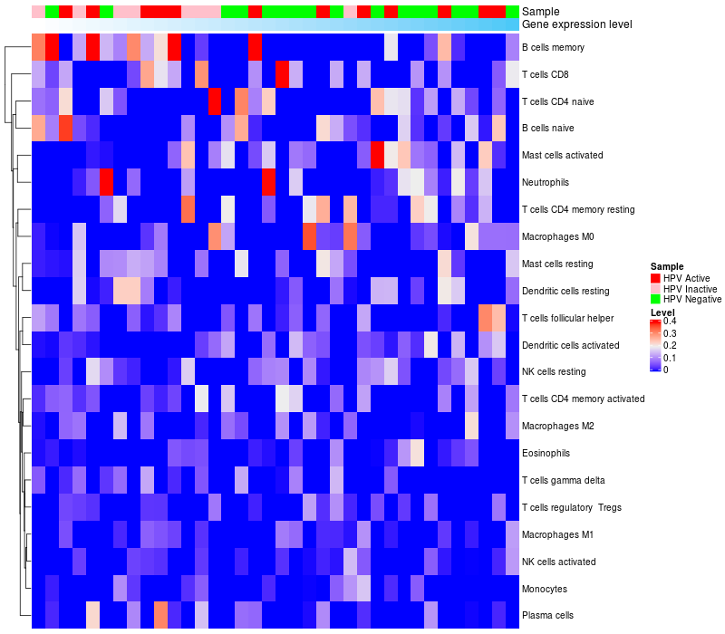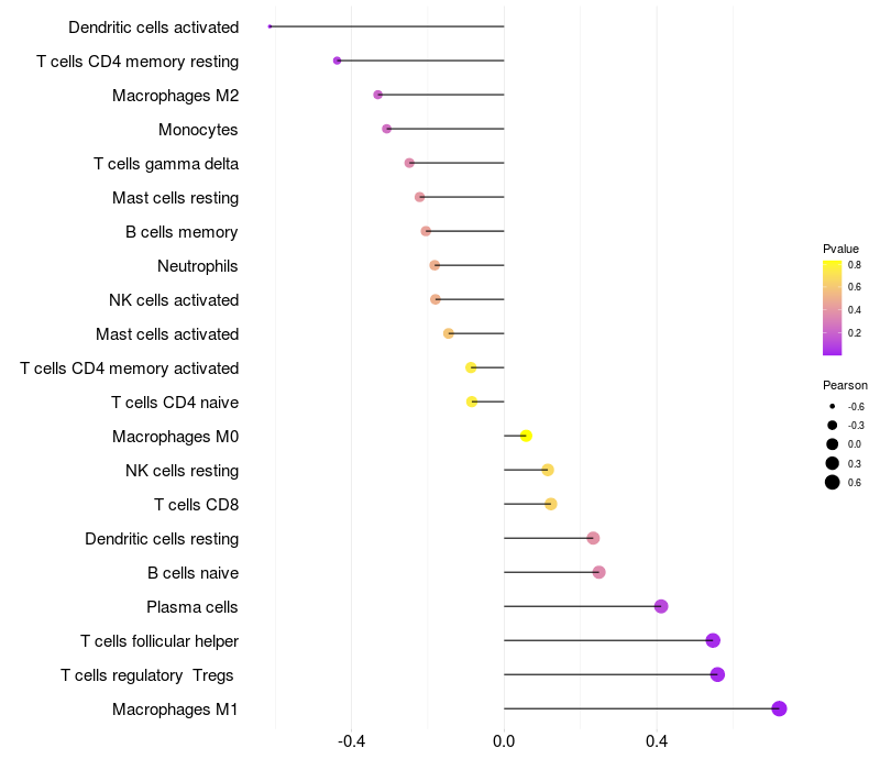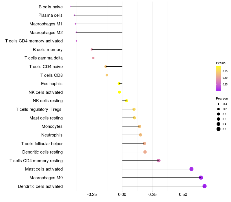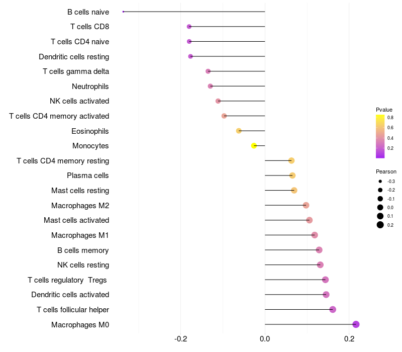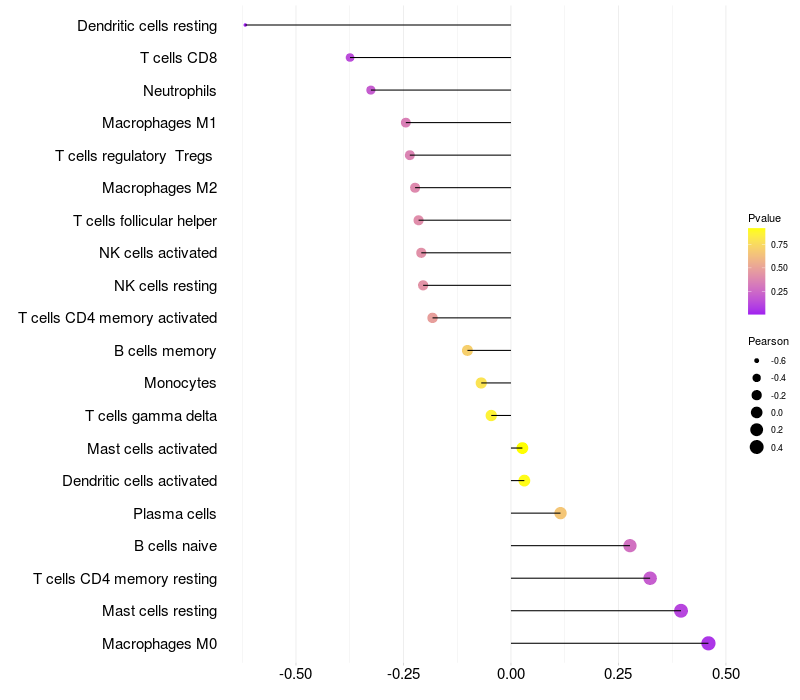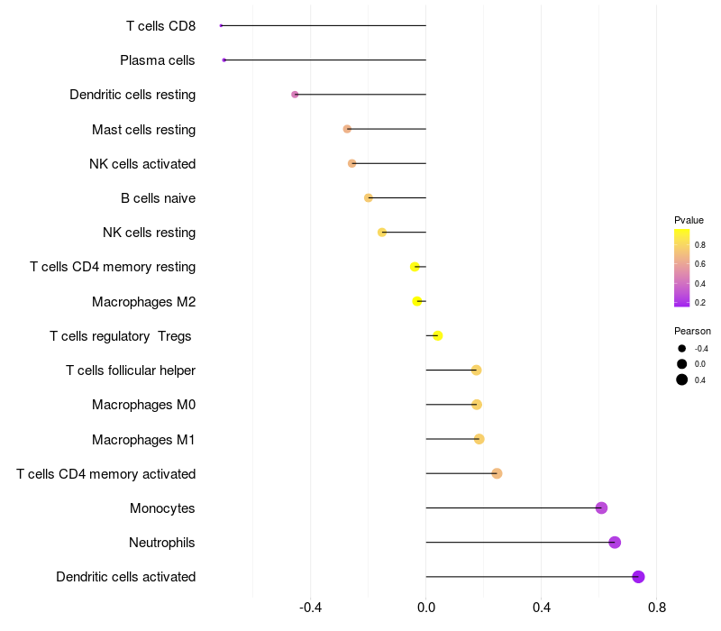 Lollipop of RTKN expression and immune infiltrating cell level correlation result in HPV+ samples
