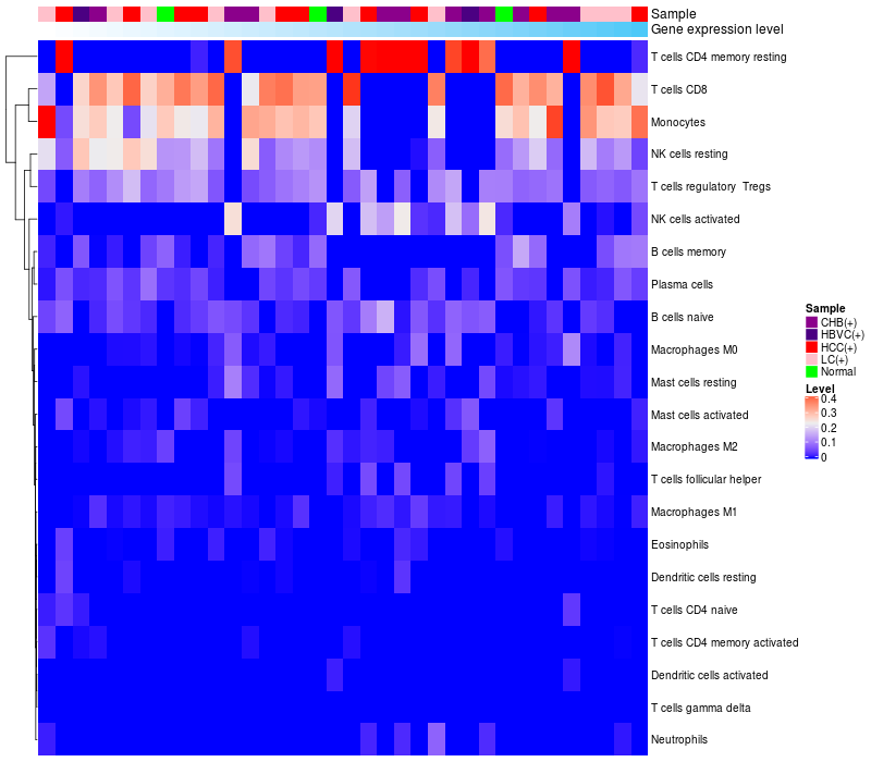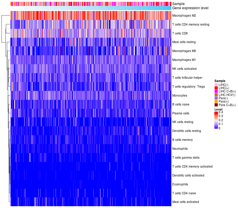 Liver hepatocellular carcinoma HCV (HBV+)(86), Liver hepatocellular carcinoma HCV (HBV-)(19), Liver hepatocellular carcinoma (HBV+)(209), Liver hepatocellular carcinoma (HBV+)(60), Paracancerous HCV (HBV+)(4), Paracancerous (HBV-)(28), Paracancerous (HBV+)(18) |