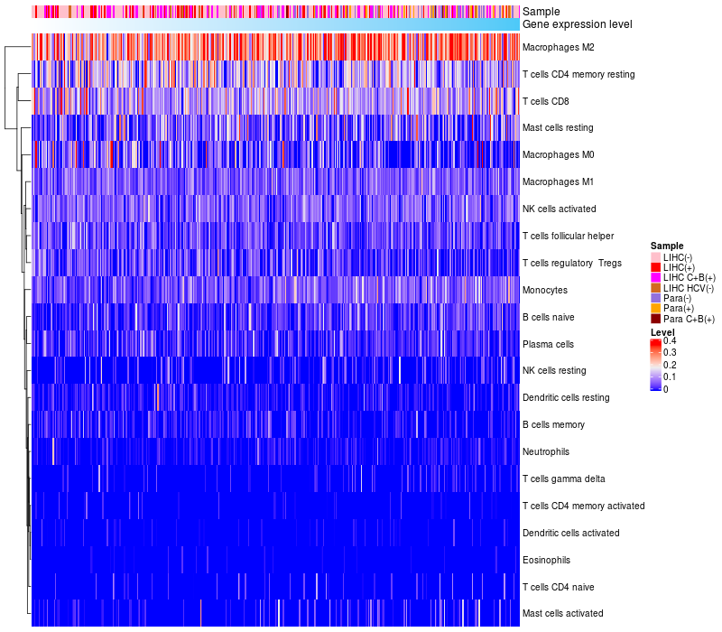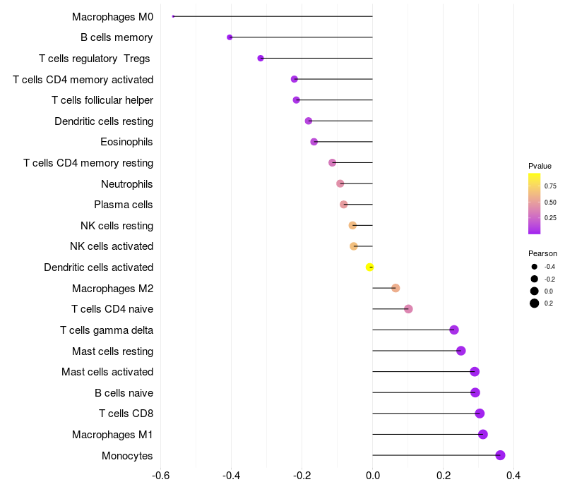 Relationship between gene expression and immune infiltrating cell level