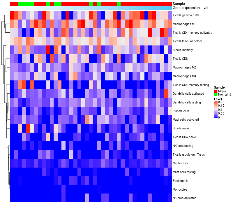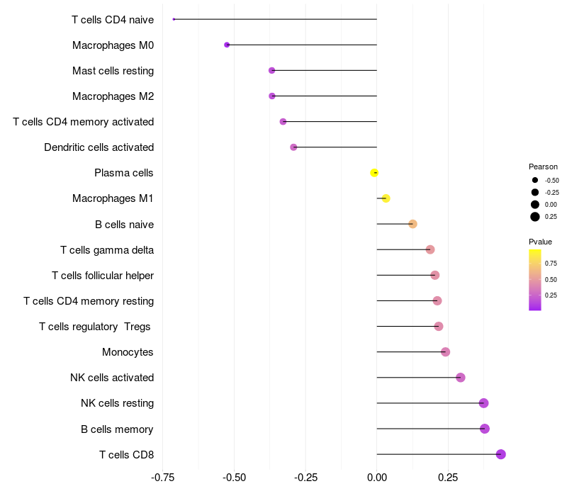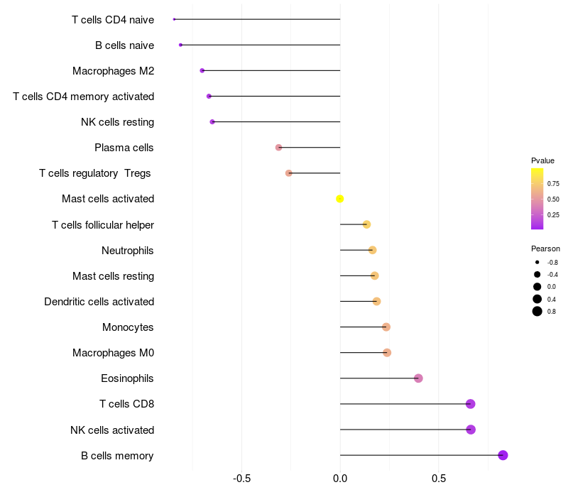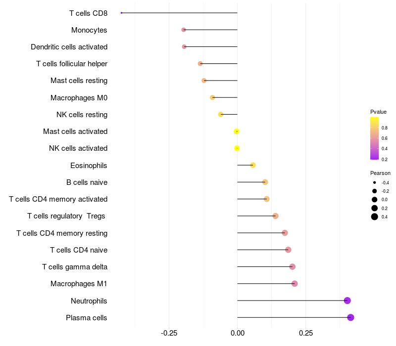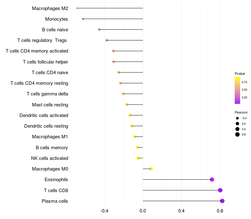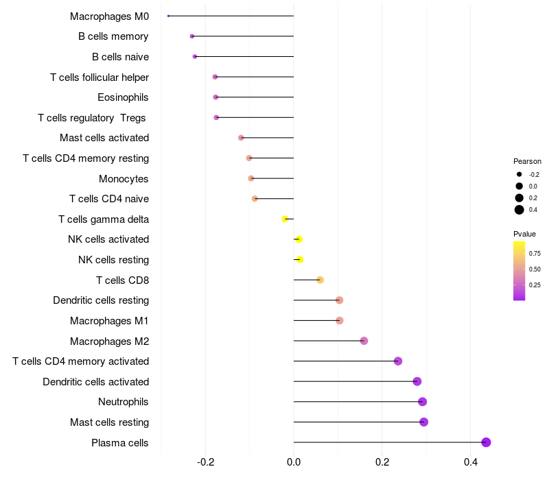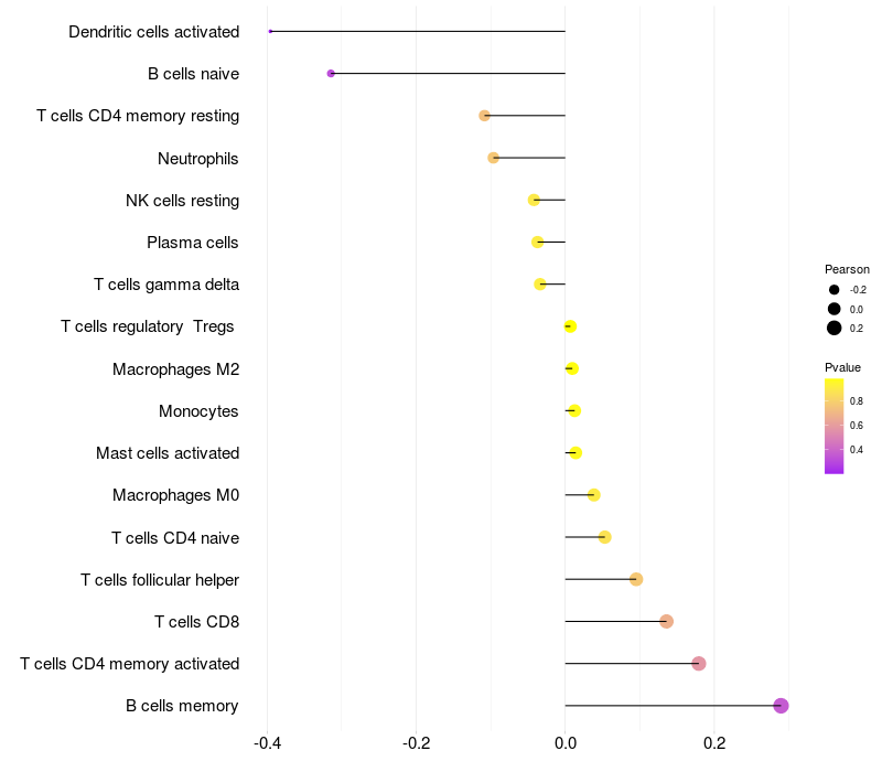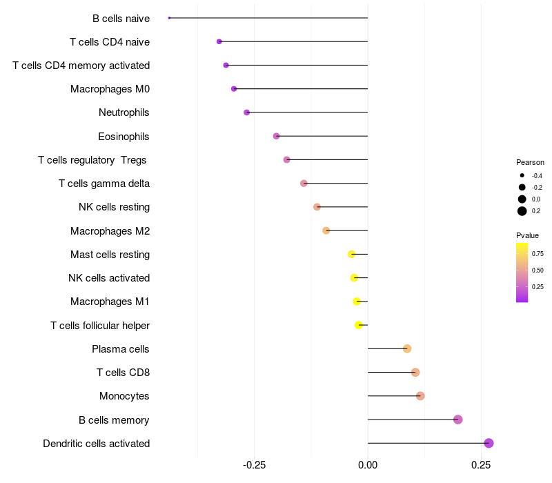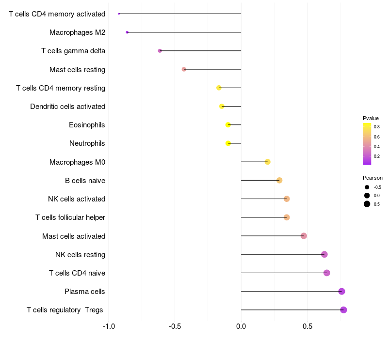 Lollipop of RYR2 expression and immune infiltrating cell level correlation result in EBV+ samples