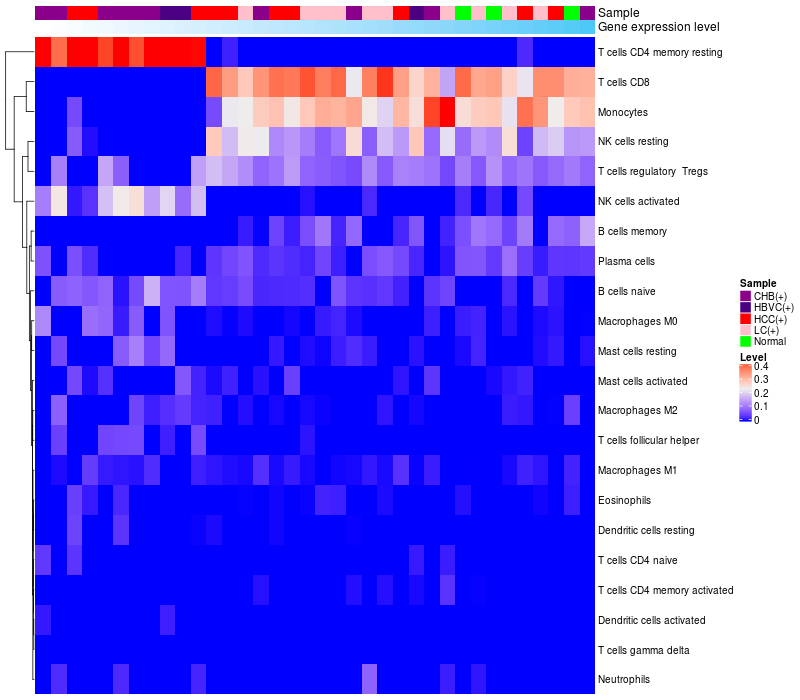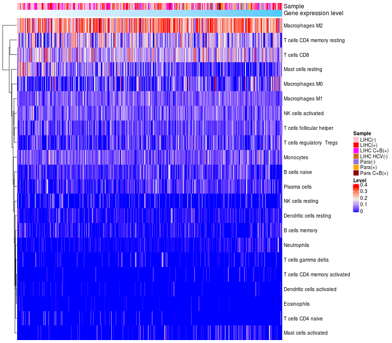 Liver hepatocellular carcinoma HCV (HBV+)(86), Liver hepatocellular carcinoma HCV (HBV-)(19), Liver hepatocellular carcinoma (HBV+)(209), Liver hepatocellular carcinoma (HBV+)(60), Paracancerous HCV (HBV+)(4), Paracancerous (HBV-)(28), Paracancerous (HBV+)(18) |