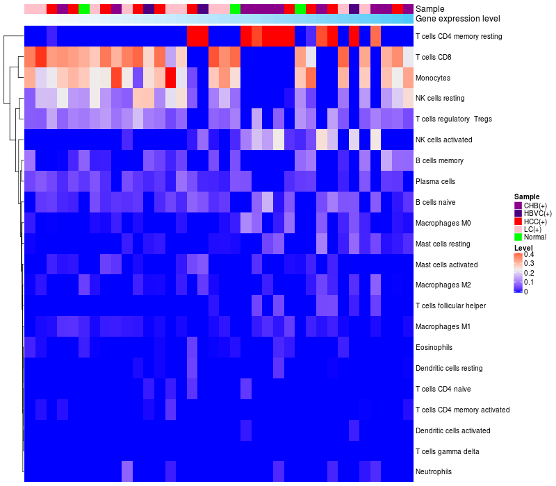 Liver hepatocellular carcinoma HCV (HBV+)(86), Liver hepatocellular carcinoma HCV (HBV-)(19), Liver hepatocellular carcinoma (HBV+)(209), Liver hepatocellular carcinoma (HBV+)(60), Paracancerous HCV (HBV+)(4), Paracancerous (HBV-)(28), Paracancerous (HBV+)(18) |