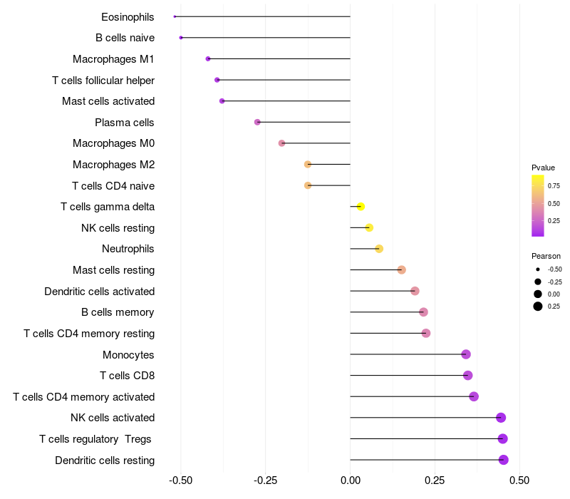 Relationship between gene expression and immune infiltrating cell level