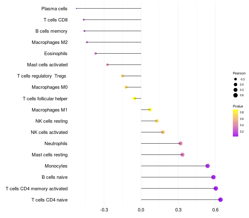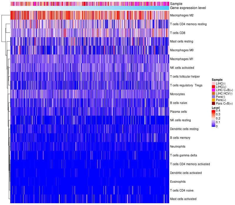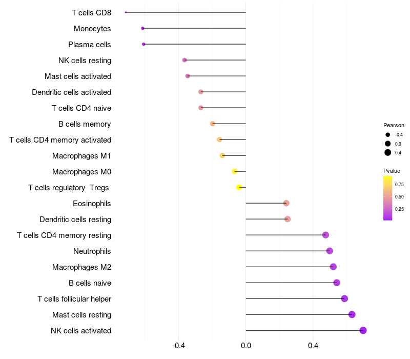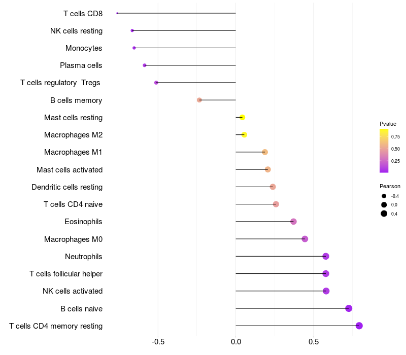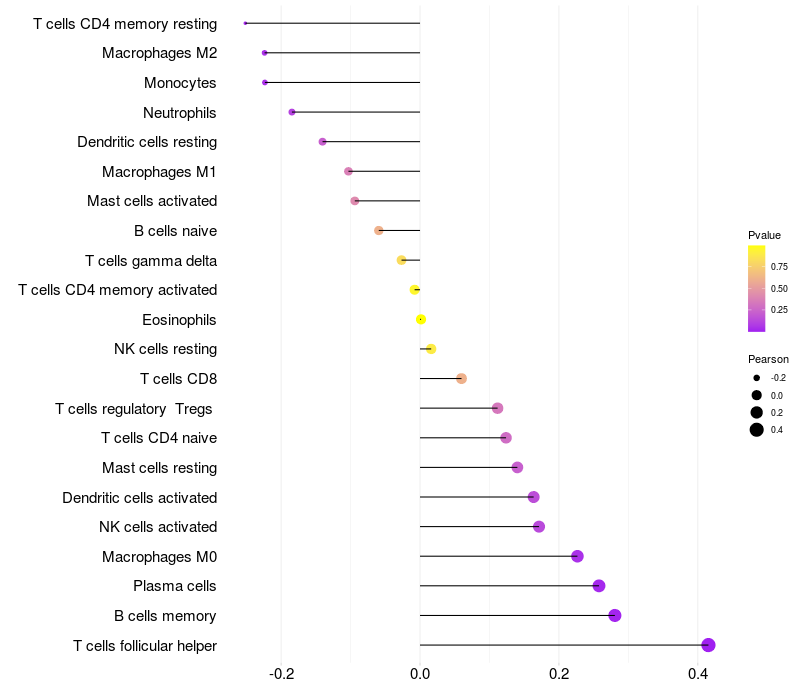Relationship between gene expression and immune infiltrating cell level